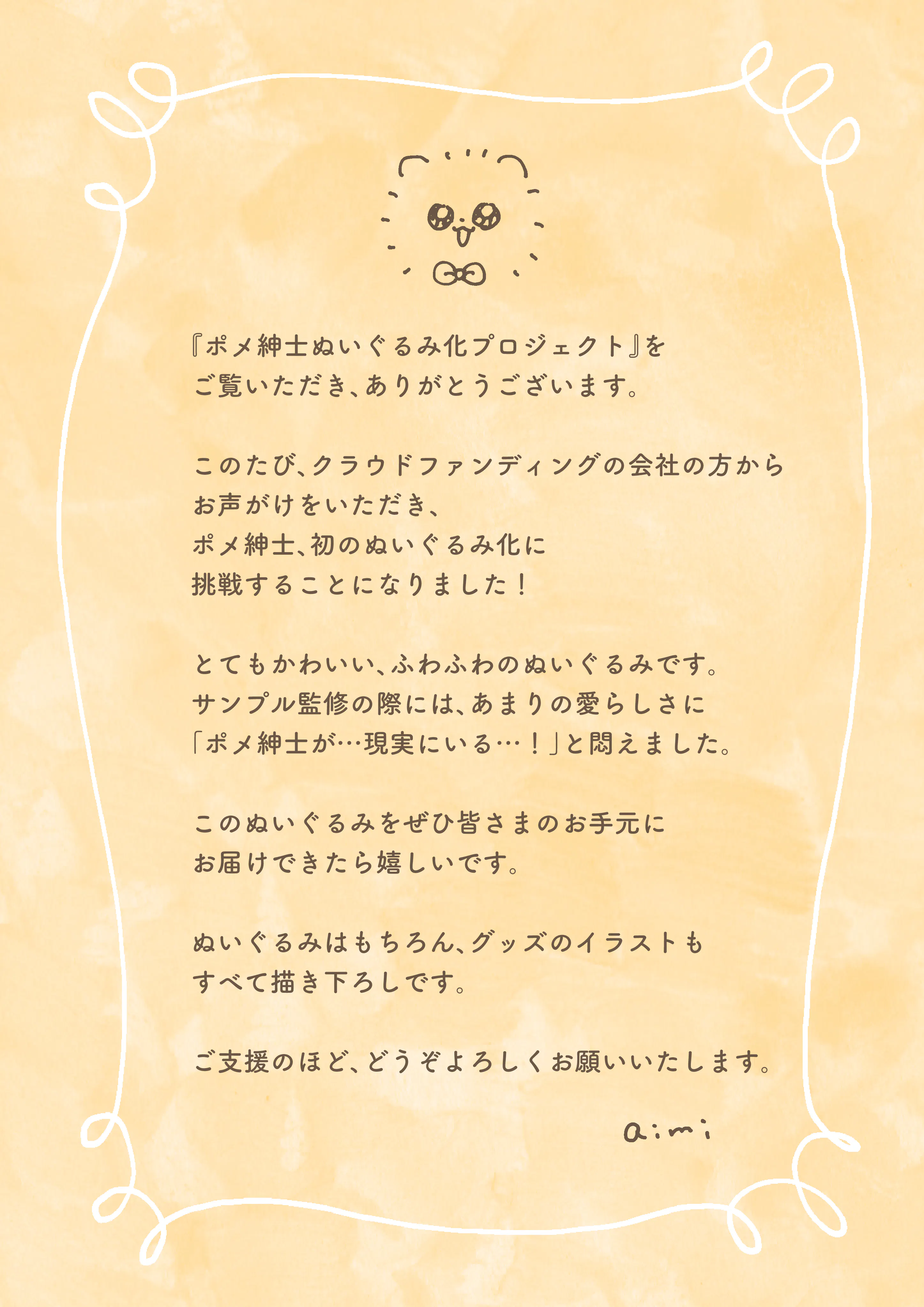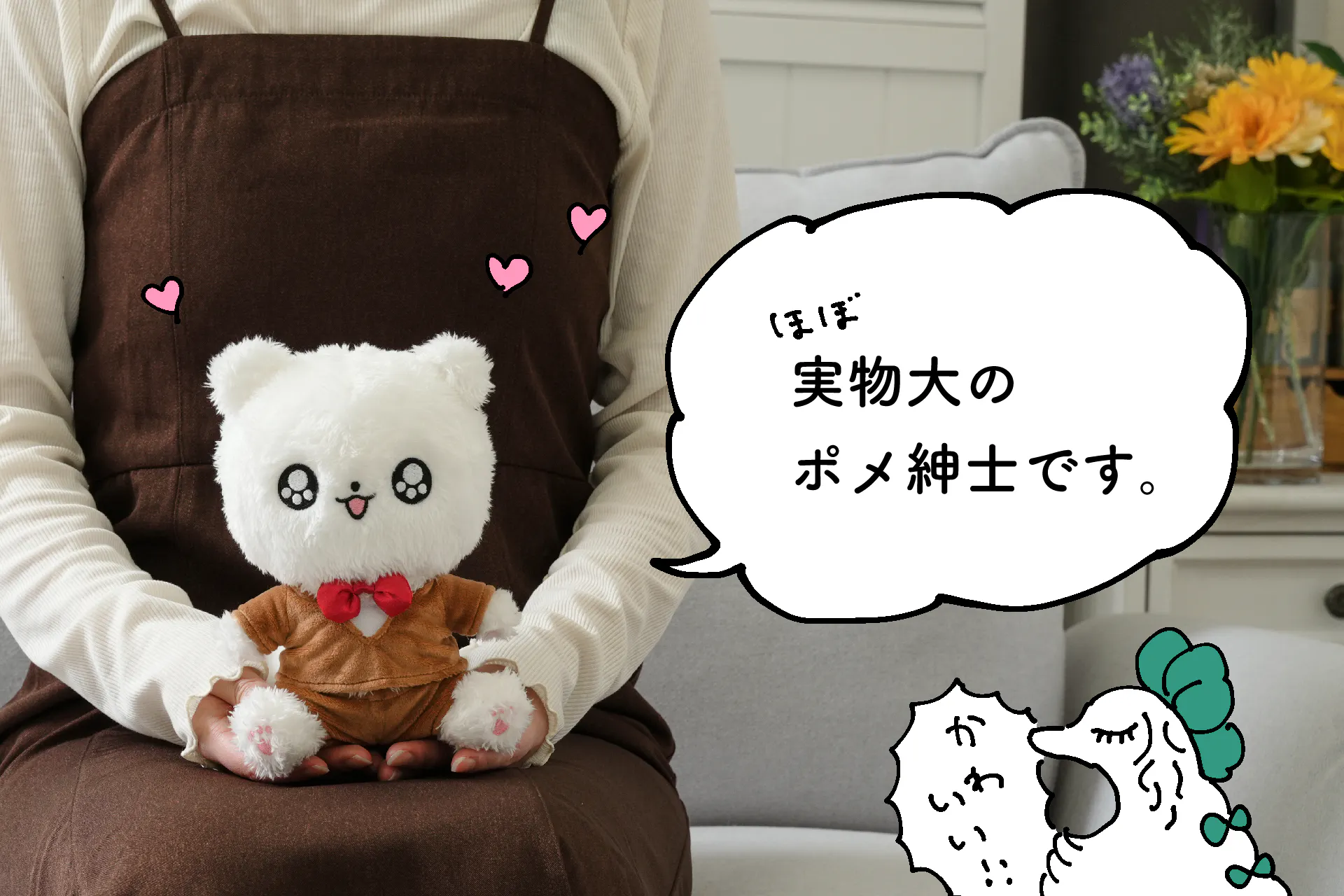 漫画家aimiが描く「ポメ紳士」がほぼ実物大でぬいぐるみ化に挑戦します!