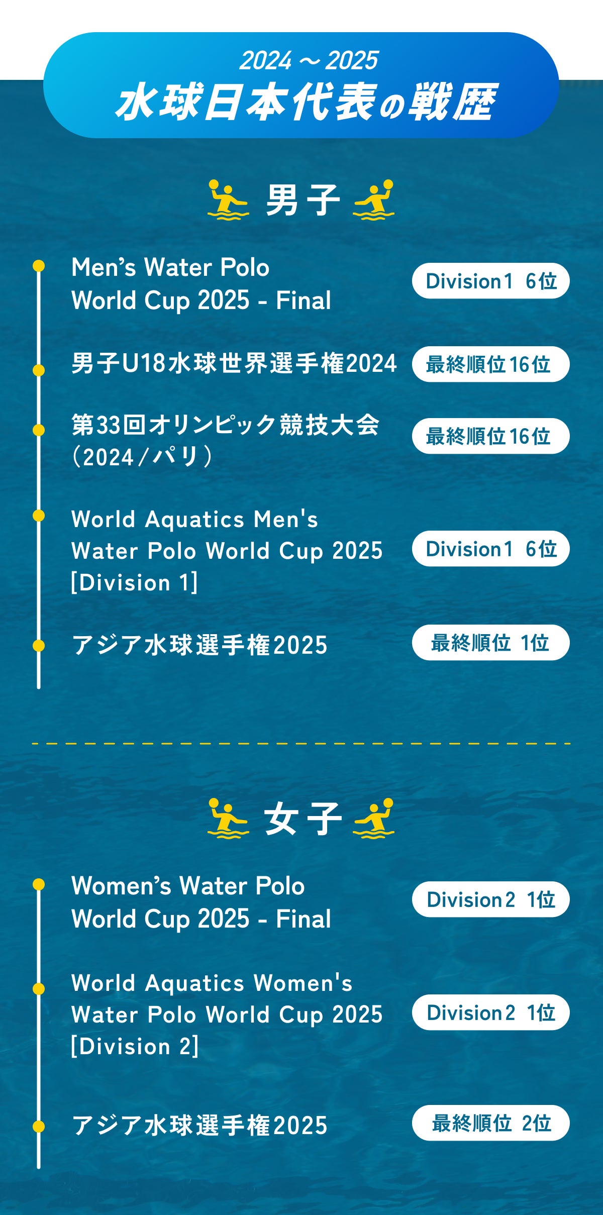 水球競技は”公益財団法⼈ ⽇本⽔泳連盟(JAPAN AQUATICS)”に所属しています。