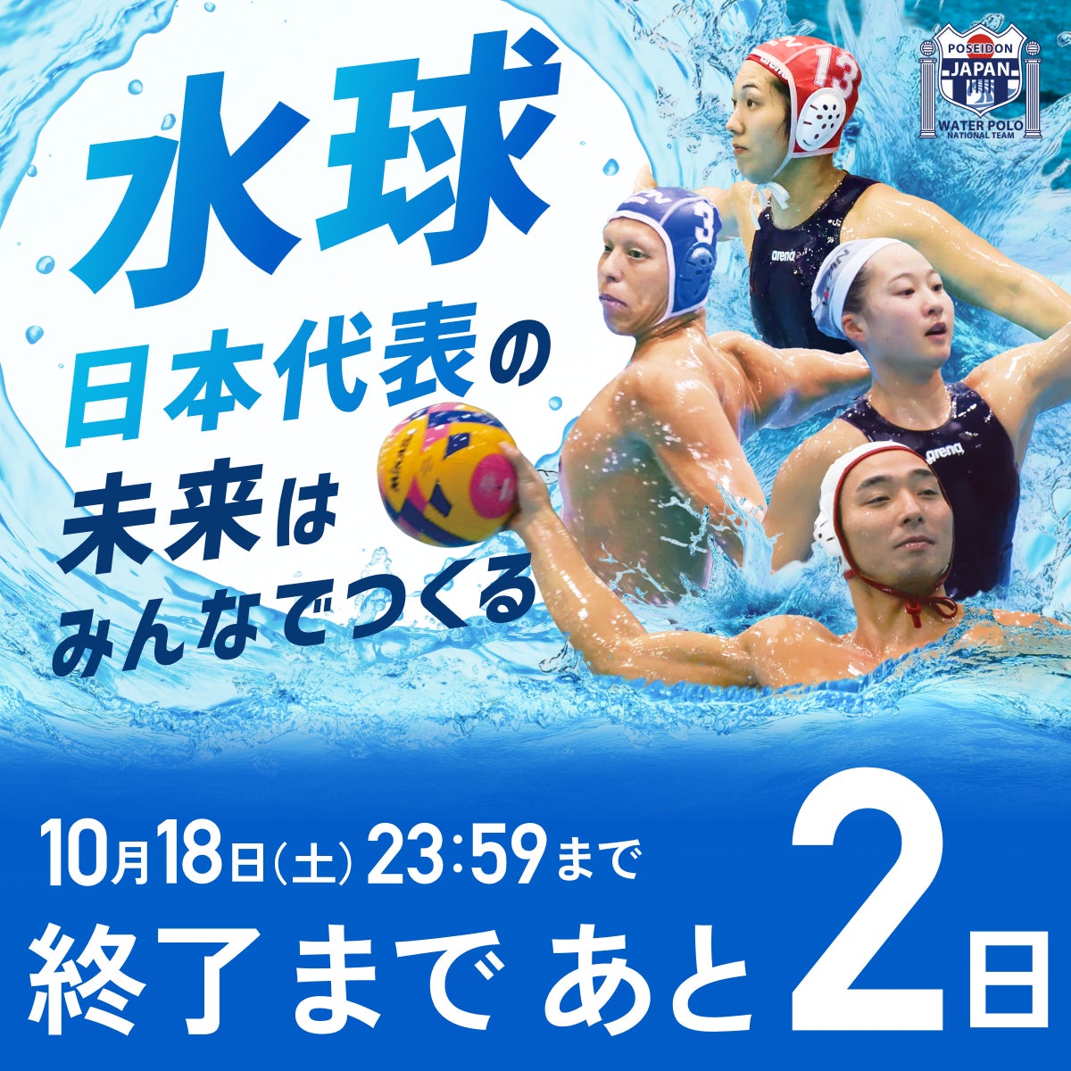 2025/10/17 10:30いよいよ、クラウドファンディング終了まであと1日となりました。これまでご支援・ご声援をお寄せくださった皆さまに、心より感謝申し上げます。多くの方がポセイドンジャパン、そして次世代の選手たちの未来に想いを託してくださいました。本日ご紹介するのは、特別なリターン【U19ジュニア代表チーム 事前合宿見学コース】です。2026年10月頃に東京近郊で行われる予定の合宿にご招待し、世界を目指して鍛錬を積む若き代表候補たちの姿を、間近でご覧いただけます。緊張感の中にも確かな希望が宿るその現場は、まさに「未来を育てる現場」。普段は見られないトレーニングやチームの空気を体感できる貴重な機会です。水球日本代表を応援してくださる方々にこそ、ぜひ体験していただきたいリターンです。▶ ご支援はこちらからhttps://camp-fire.jp/projects/847320/backers/new?id=1448796選手たちは、皆さまの想いを胸に、次の舞台を見据えています。最後の1日、どうかこの挑戦を多くの方に広めてください。そして、一緒に日本水球の未来を見届けてください。 もっと見る