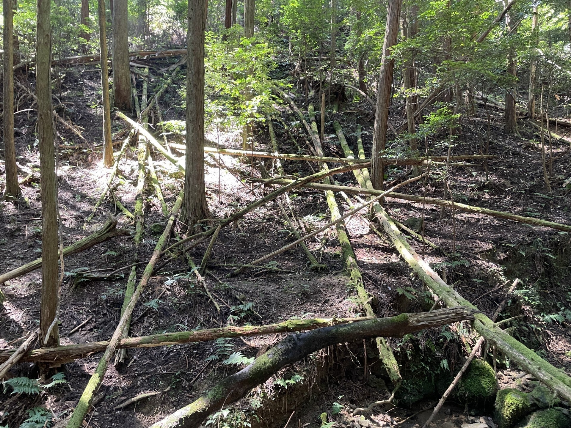 見渡す限りの倒木に、所狭しと並ぶ人工林。