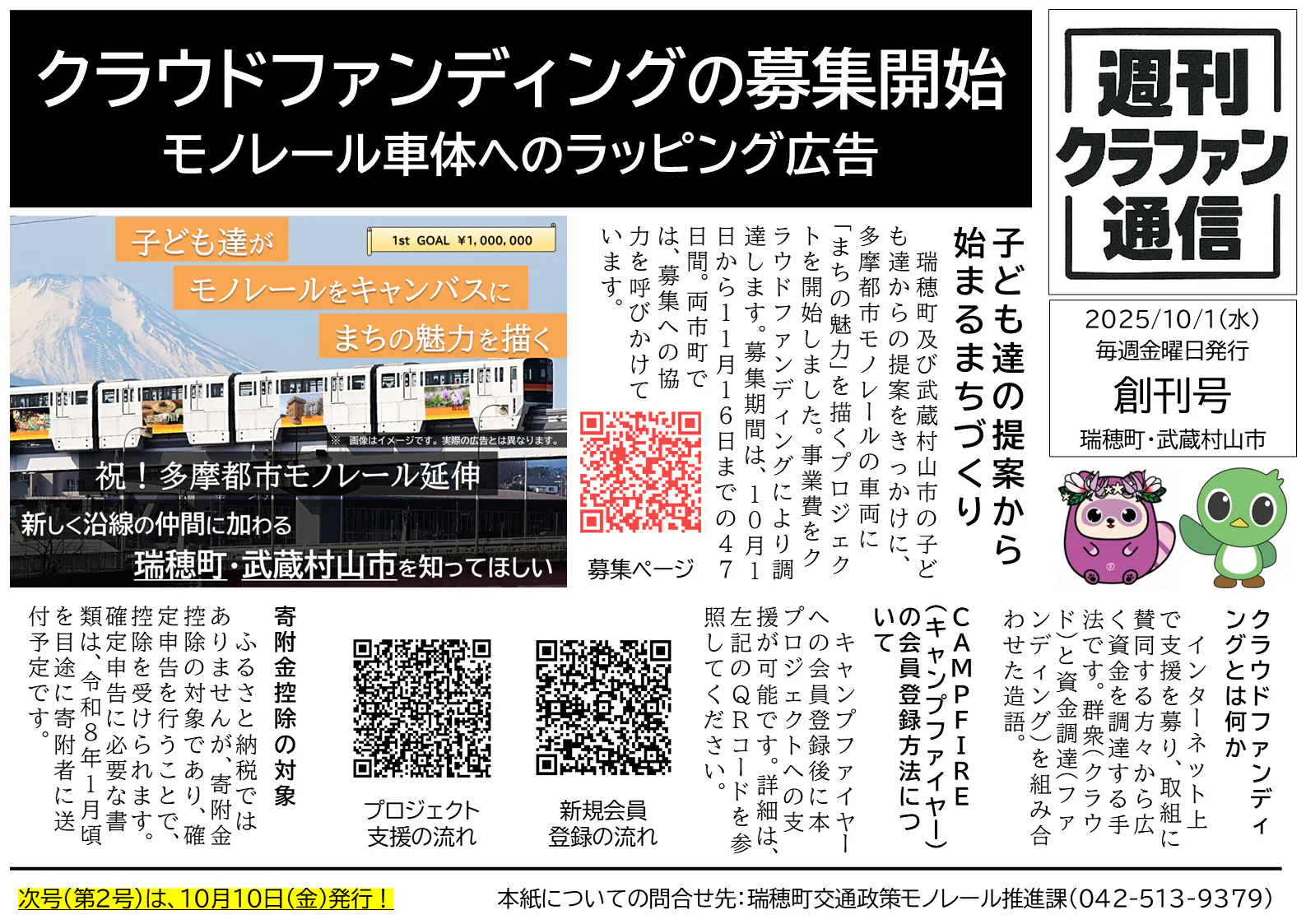 クラウドファンディングの実施状況の報告など、募集期間中に情報発信するための媒体として「週刊クラファン通信」を創刊しました。添付画像を保存してご覧ください。