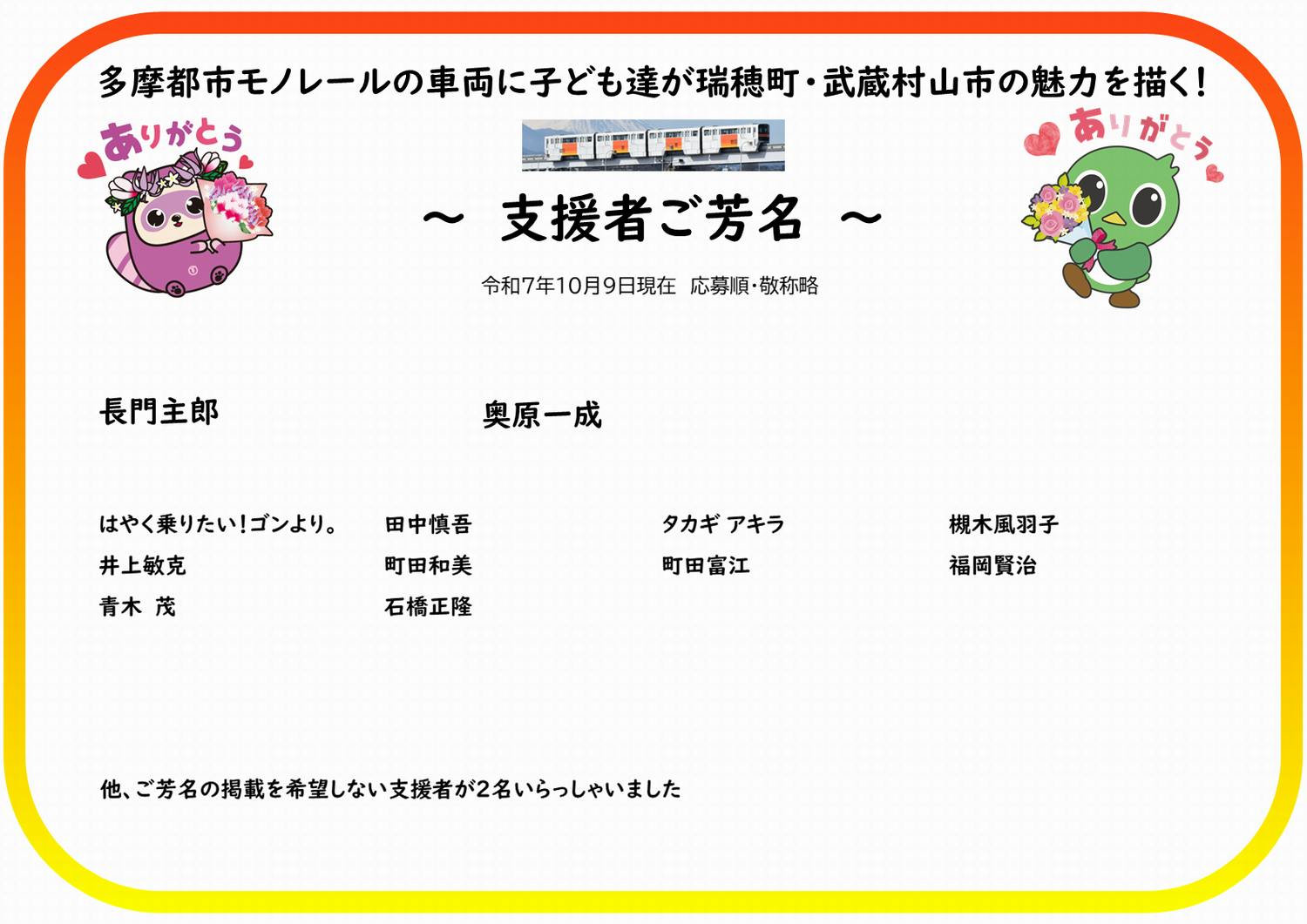 ご芳名掲載(第2回)を実施しました!