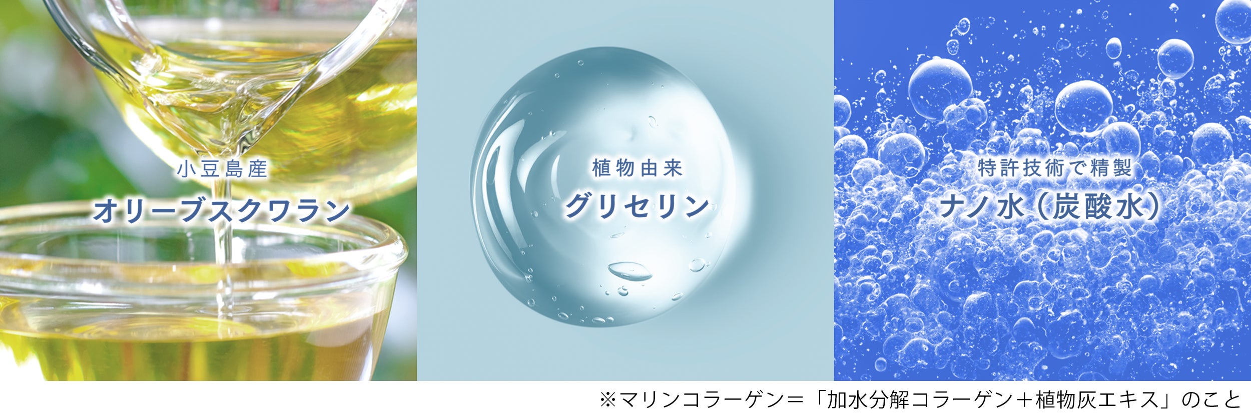 その他にも肌との親和性が高く肌に自然になじみ角質層への浸透を助ける「小豆島産(香川県)のオリーブスクワラン」など。