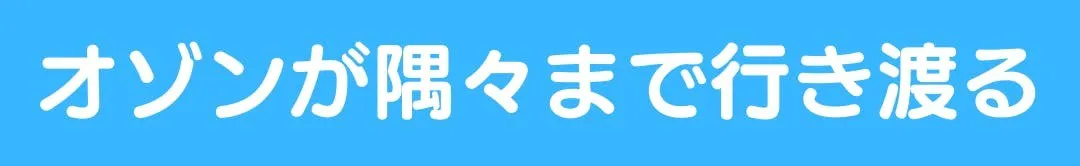 オゾンの分子(O₃)は、酸素(O₂)と比べると非常に不安定です。そのため、オゾンはにおいの物質が近くにあると、酸素原子1つを手放して酸素(O₂)に戻ろうとします。このとき、においの物質はオゾンの酸素原子と結びついて酸化し、破壊されます。