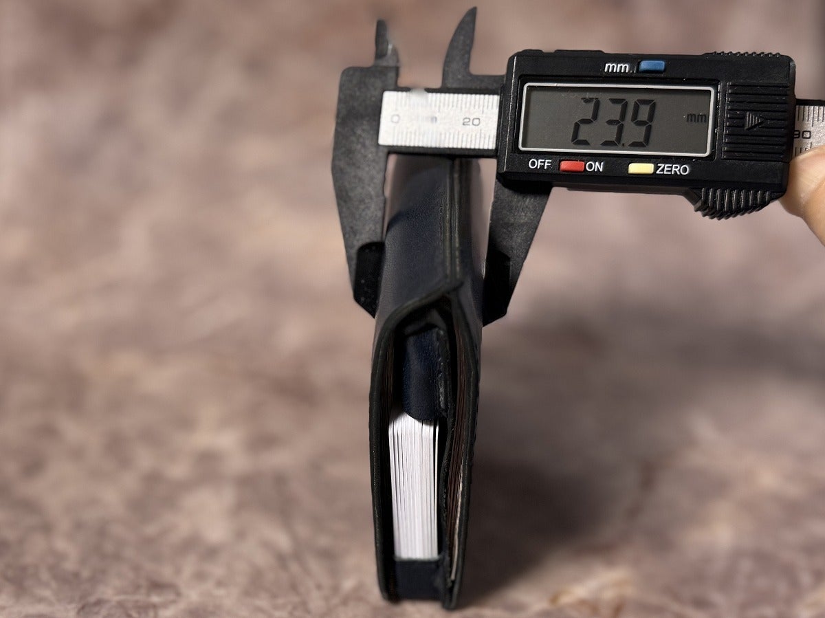 極限収納力は紙幣25・コイン22・カード12で薄さ2.4cm