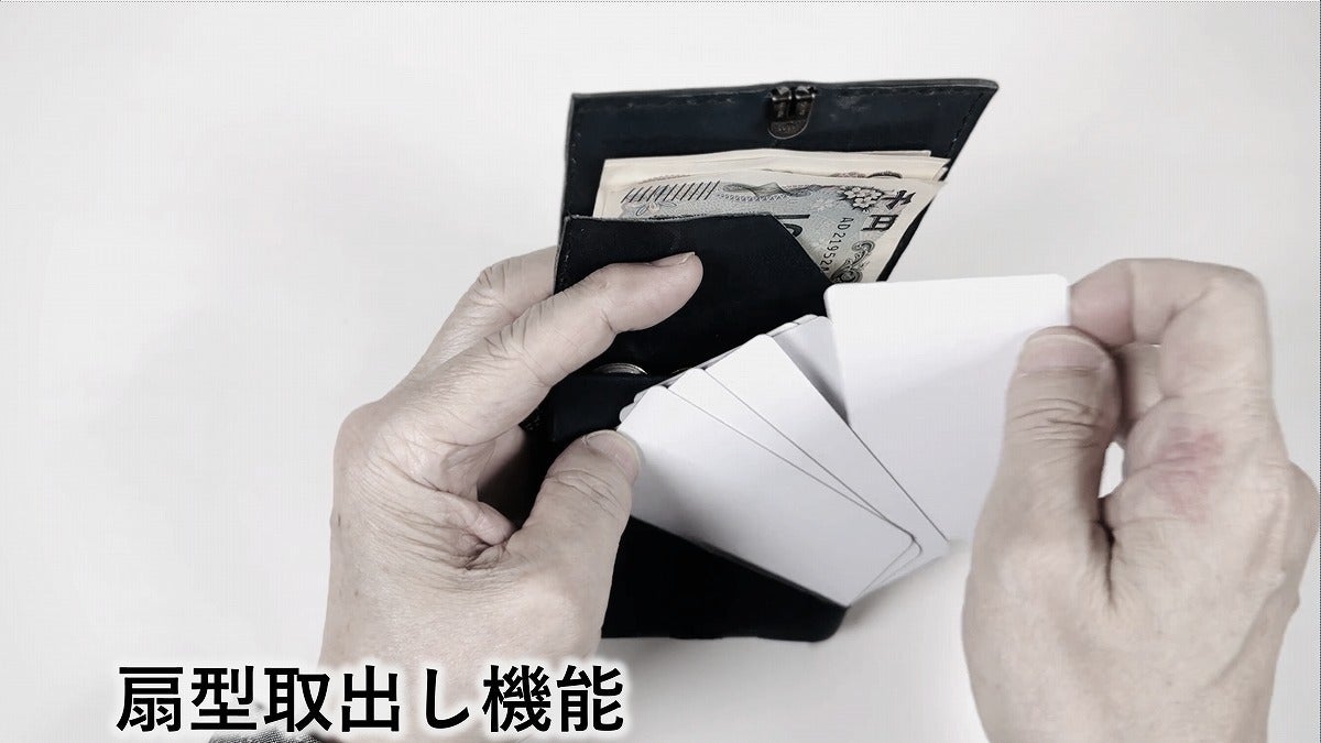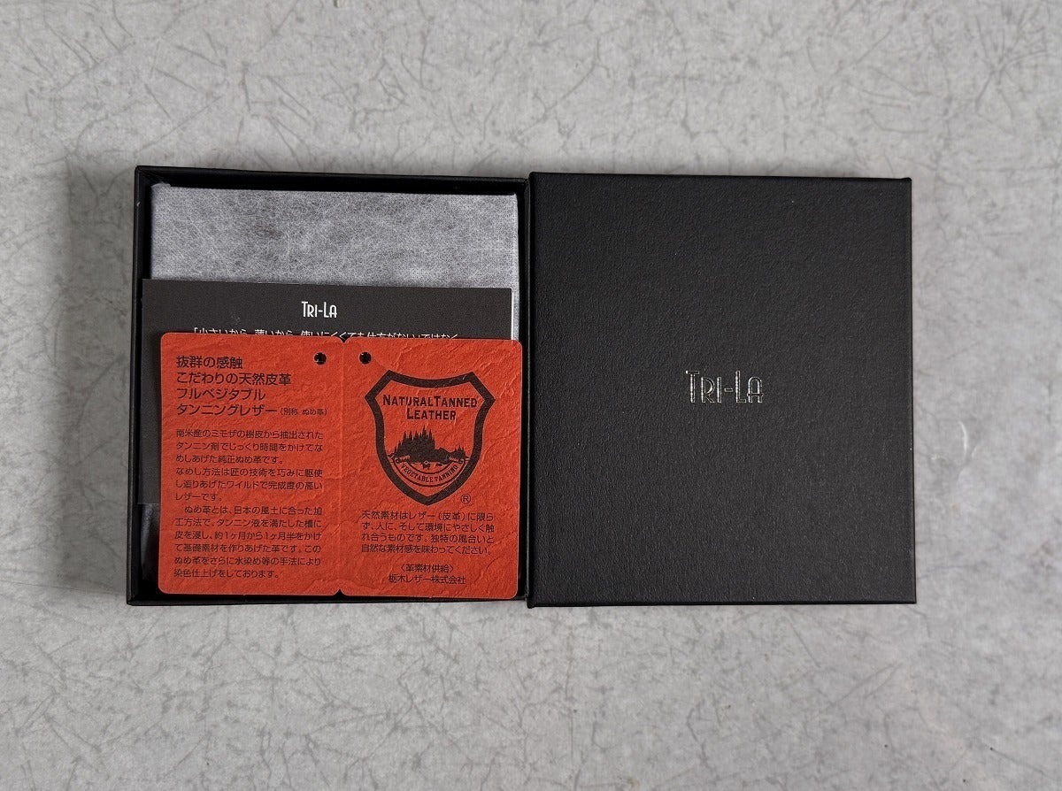 スリットがガイドする効率的な扇形スプレッドTri-La(トライラ)はこうした行動設計で支払い動作を最適化し、革製品業界の様々な常識や価値観とのすり合わせでブラッシュアップされました。科学と実証・特許技術が生み出したミニ財布五原則の結晶、皆様の日常にぜひお届けしたい一品です。