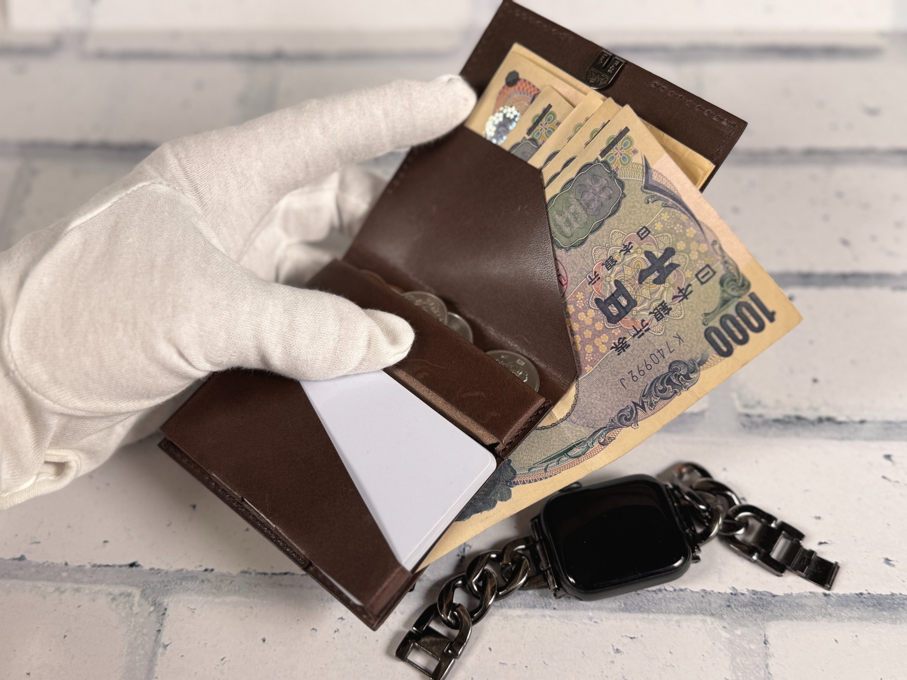私たちはこの財布を「お金の入れ物」であると同時に、使う人に寄り添う「小さな建築」と思い設計しました。