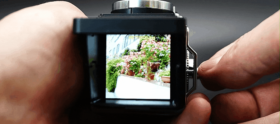 真上からのぞき込むのでお昼時は真上から日差しが差し込みます。基本モニターの上に顔が位置するので遮断してくれますが、それでも見ずらい場合は上部の折畳式機能を右手で利用して左手でシャッターを押すようなアレンジもしていただけます。