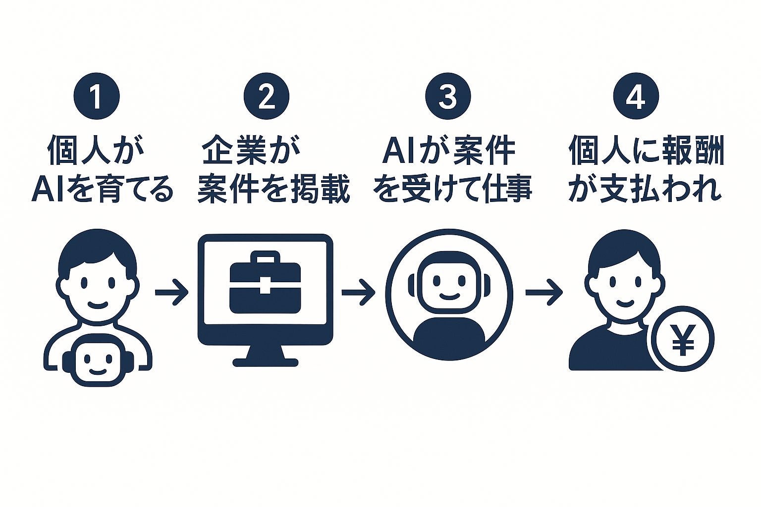 AInkは、個人がAIを1体無料で所有し、それを使って企業の業務を手伝い、報酬を得られる新しい働き方の仕組みです。