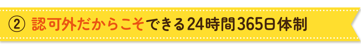 認可外保育施設だからこそできる柔軟な運営で、24時間365日保育対応を実現し、社会のニーズに合わせ安心・安全な環境を提供しています。