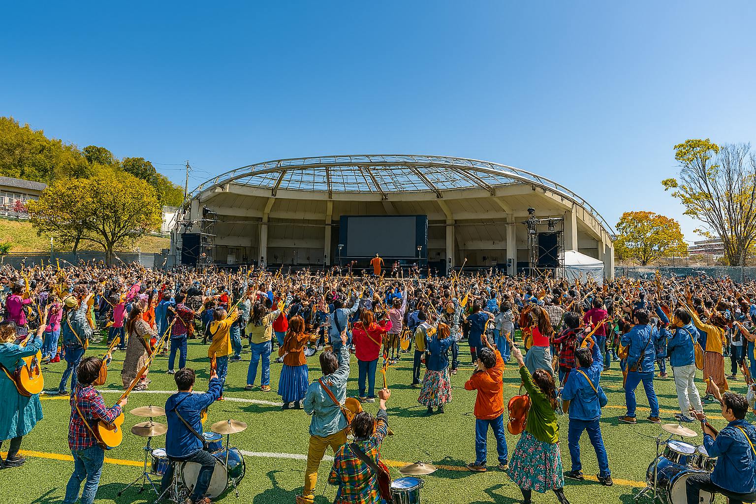 総勢300人が青空の下で世代も腕前も国籍さえも越えて “ひとつのバンド” を結成します。