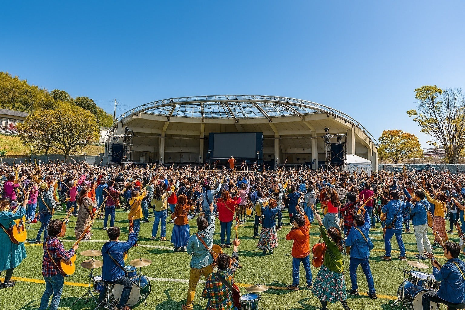 総勢300人が青空の下で世代も腕前も国籍さえも越えて “ひとつのバンド” を結成します。
