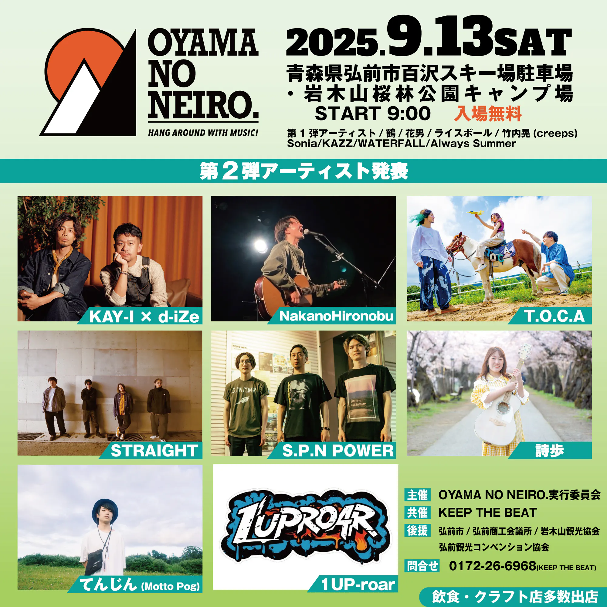 2025/09/05 12:30「OYAMA NO NEIRO.」の延期にあたり、同日9/13にKEEP THE BEATにて「OYAMA NO NEIRO.〜KTB編〜」として二部構成でイベントを開催させていただきます。また、今回イベントの通しチケットはなく、各公演ごとのチケット販売となります。あらかじめご了承ください。チケット販売はe+のみでの対応とします。いずれも9/6 12:00〜から販売開始いたします。それぞれのチケットが必要となりますのでご注意ください第一部 OPEN 9:00 START 9:30前売り3,000円 当日 3,500円(ドリンクチャージ別途600円)出演者(A-Z)Always SummerKAZZ1 UP-roarNakanoHironobuS.P.N POWERSTRAIGHTSoniaT.O.C.AWATERFALLてんじん(Motto Pog)花男詩歩竹内晃(creeps)鶴チケット販売ページはこちらhttps://eplus.jp/sf/detail/4396780001-P0030001第二部 OPEN 18:30 START 19:00前売り 3,000円 当日 3,500円(ドリンクチャージ別途600円)出演者(A-Z)KAY-I × d-iZeライスボールチケット販売ページはこちらhttps://eplus.jp/sf/detail/4396800001-P0030001各公演のお問い合わせに関してはKEEP THE BEATまでTEL:0172-26-6968 もっと見る