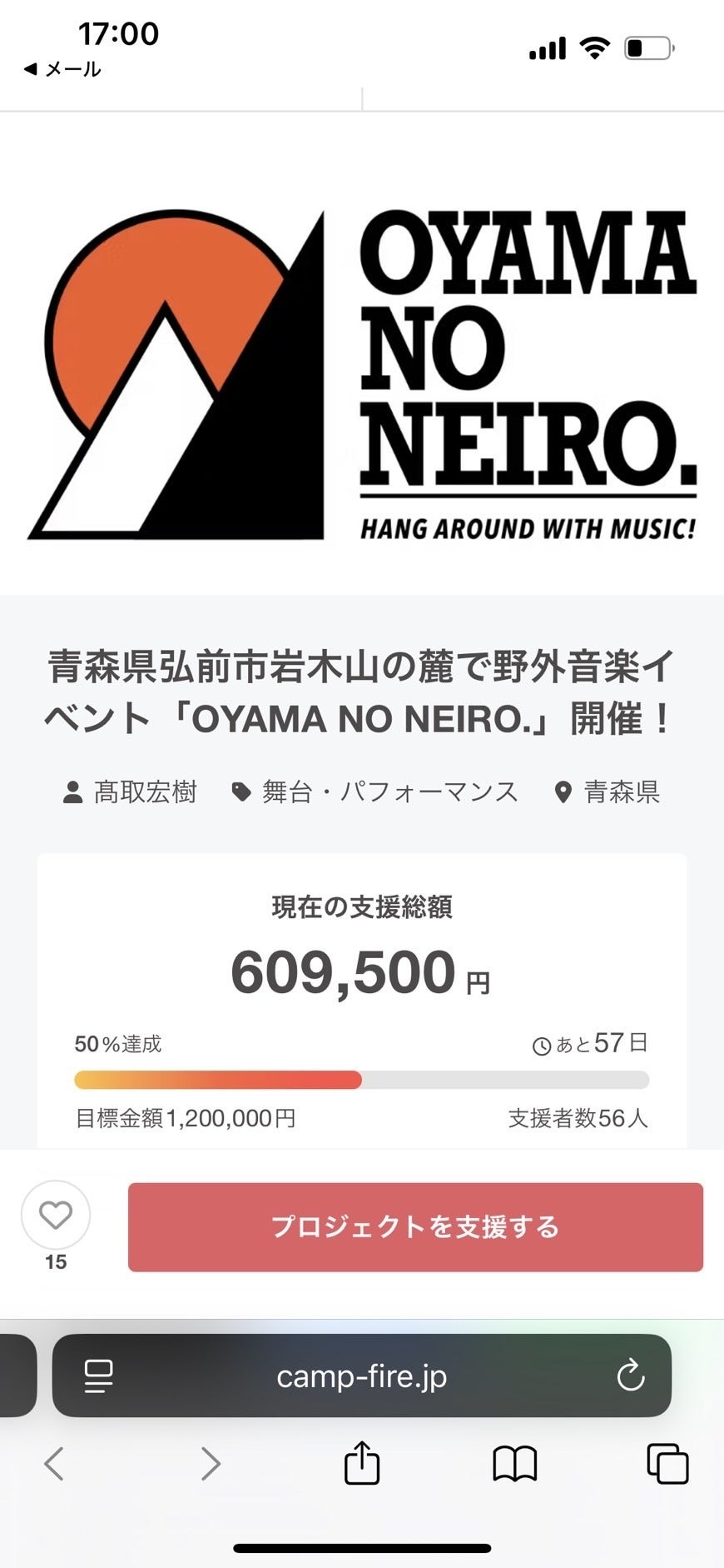 本日 17時ごろ 開始から 46時間で 目標金額の50% 達成いただきました!