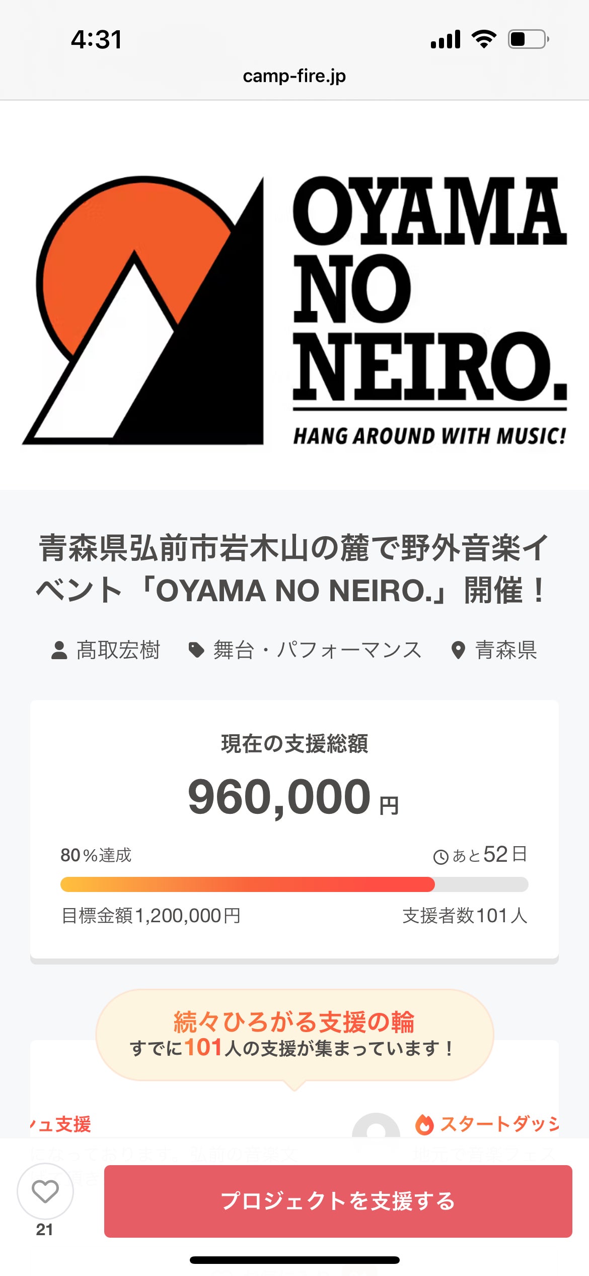 目標金額の80%達成いたしました皆様 本当にありがとうございます引き続き準備 ぬかりなく進めさせていただきます