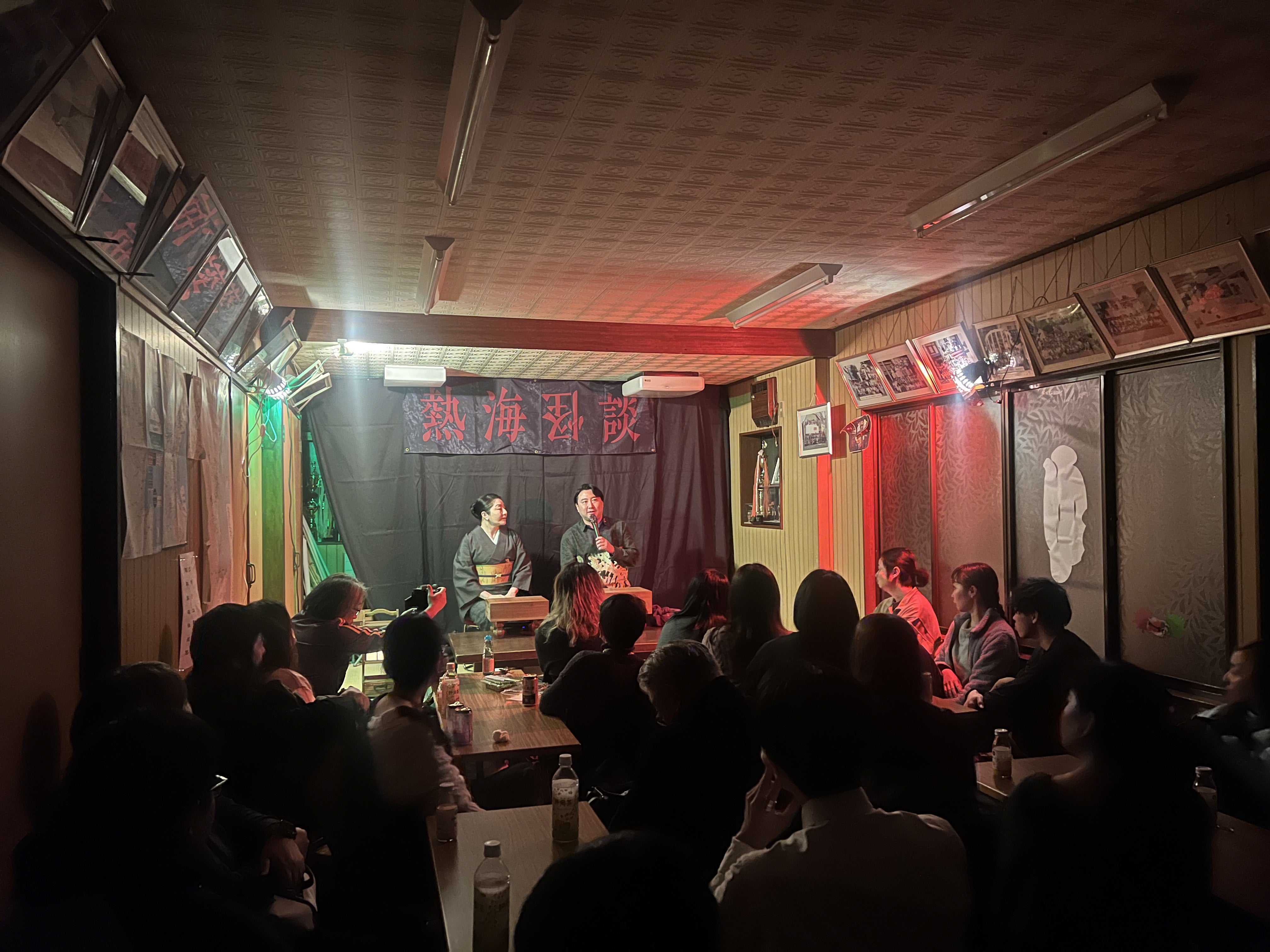 私が営む『バーコマド』では夜間の経済活動を活性化する「ナイトタイムエコノミー」に少しでも貢献すべく、イベントの開催を行ってきました。その1つが『熱海怪談』です。『熱海怪談』は、著名な怪談師をお招きして、怪談をたっぷり語ってもらうイベントで、地域の集会所で年2回、夕方から夜にかけての時間帯で開催しています。町内の飲食店の協力のもとドリンクやフードも楽しめるようになっていおり、最近は県外から泊まりがけで参加する人も多くなっています。