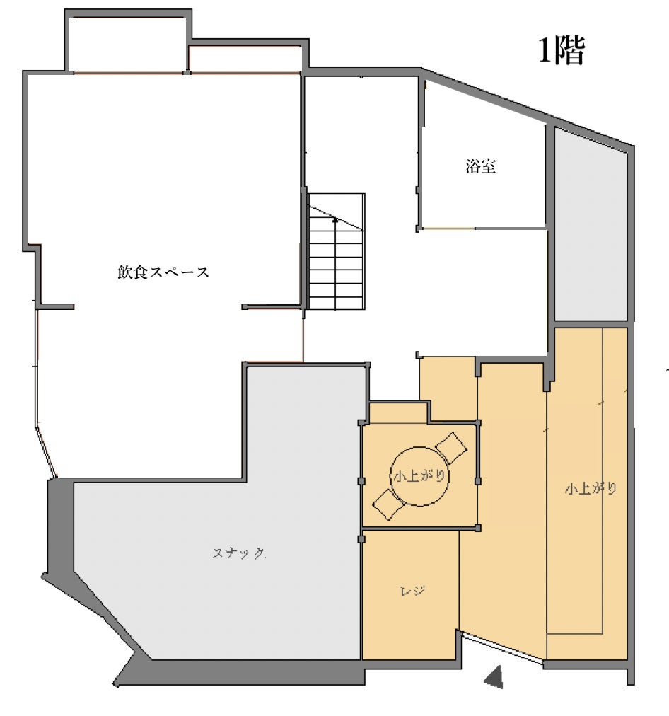 「旧つたや」は建築的な価値も高い建物です。和洋折衷の外観もさることながら、装飾を凝らしたインテリアは今では再現が難しいものです。1階は大きく3つのスペースに分かれており、中央に創業49年になるスナック亜が入居しています。右側のスペースは一昔前までお茶漬け屋として営業しており、内部には「つたや」の蔦の葉やひょうたんを模した意匠があしらわれています。左側のスペースには小さなカウンターと厨房スペースがあり、奥に広めの小上がりがあります。こちらは雨漏りが激しく壁が崩壊している状況です。