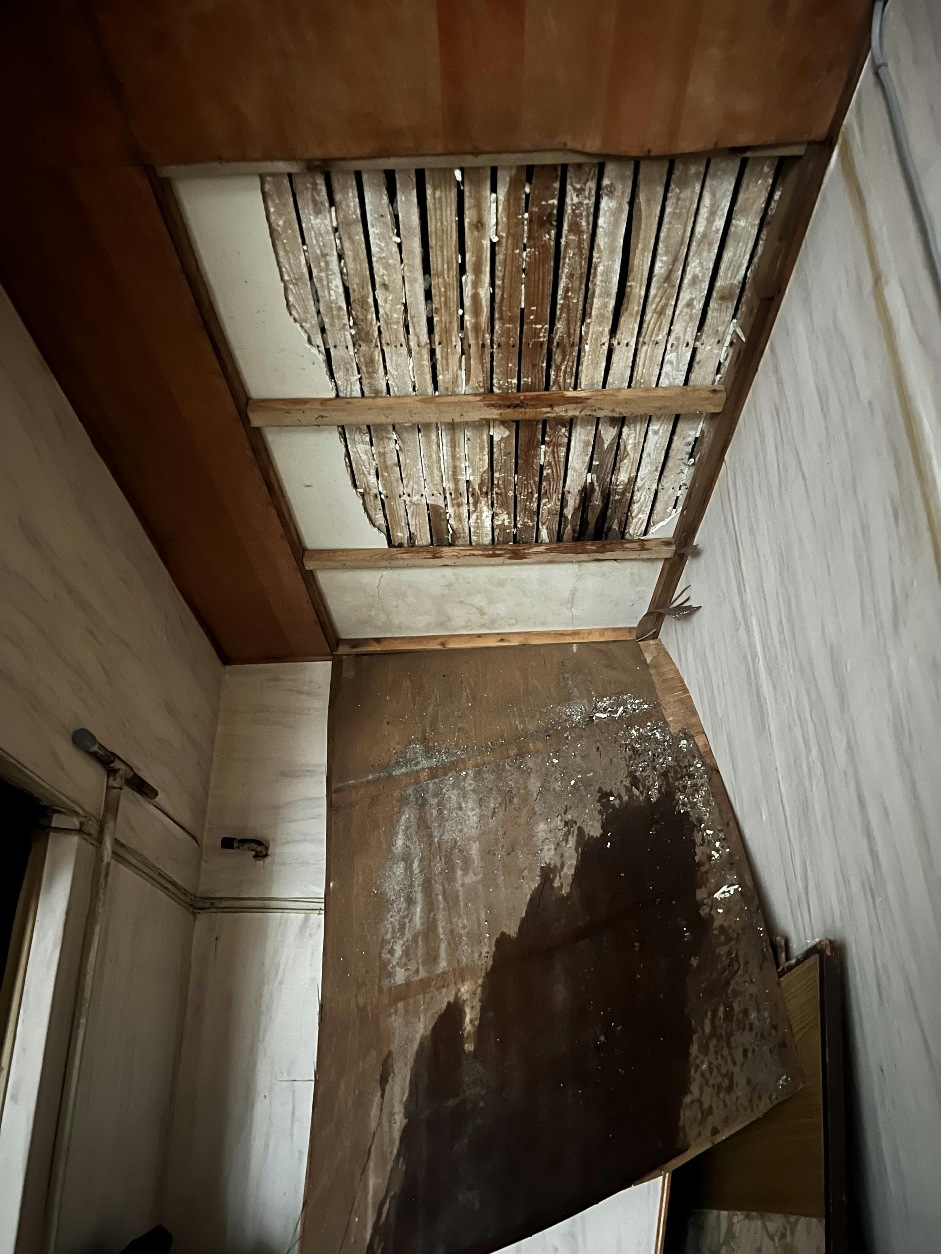 おかげさまで夜の雑貨店の開業に向けた基盤は大きく整いました。しかし、築70年の建物を再生することは、やはり簡単ではありません。先日の大雨で、開業予定スペースの天井のが一部剥がれ落ちてしまい、屋根と2階の小部屋も含めて急遽、補修が必要な状況になっています。『旧つたや』再生の過程では、思いもよらぬトラブルに見舞われる可能性があることを実感しました。
