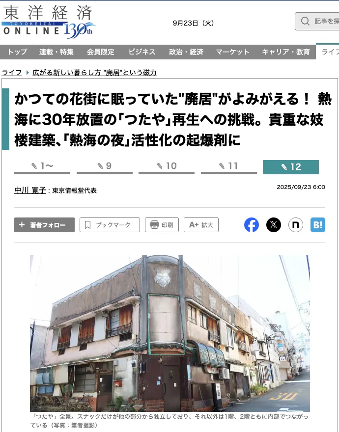 『かつての花街に眠っていた"廃居"がよみがえる! 熱海に30年放置の「つたや」再生への挑戦。貴重な妓楼建築、「熱海の夜」活性化の起爆剤に』