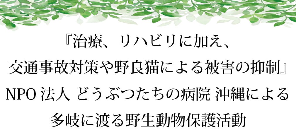 その裏側には『どうぶつたちの病院 沖縄』様による野生動物の保護活動があり、私たちは今回、この保護活動を支援させていただくために、本プロジェクト上での集まった資金の一部を寄付させていただきます。