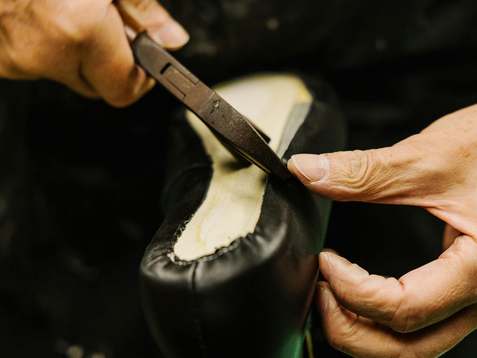 自社工場には約90年の歴史があり、職人の長く培った技術と革新的なデザイン性を高次元で融合させ、日々靴作りに励んでいます。