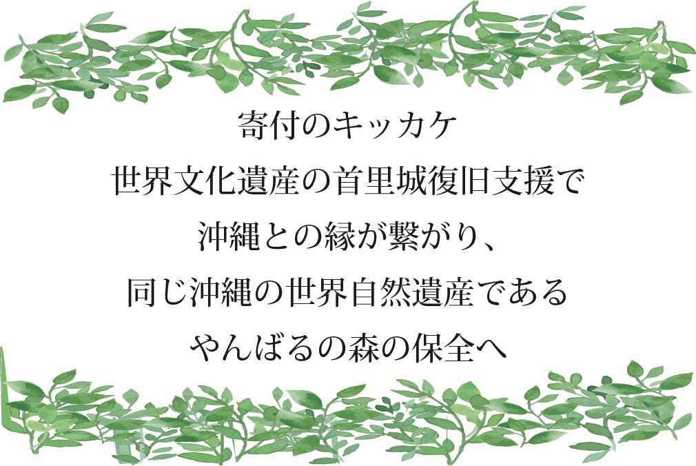 今回、やんばるの森で暮らす生き物たち、そして、そこで活動する方々の想いに触れ、感銘を受け、この度、活動支援として寄付をさせていただく運びとなりました。