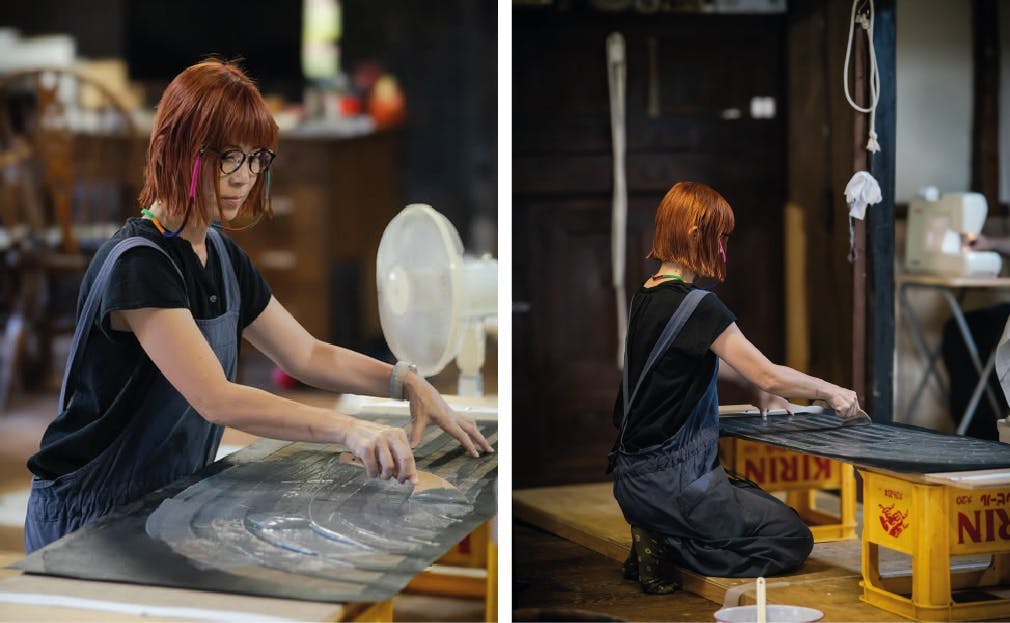 石北有美さんは美術大学で染色の技法を学んだ後、2005年に「染色工房 幟屋」を広島県福山市に設立され、型染を用いたオリジナルのテキスタイルを制作されています。