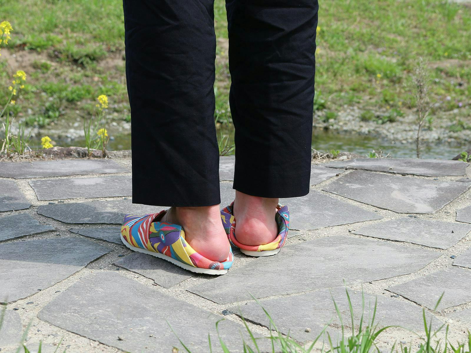 踵を踏んで、サンダルとして気軽に、ちょっとそこまでのお出かけにも履けて、