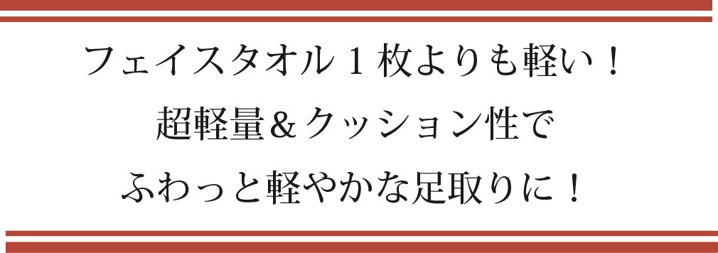 ⅱ. 超軽量!フェイスタオルよりも軽く高いクッション性で、まるで足と一体化したような履き心地!