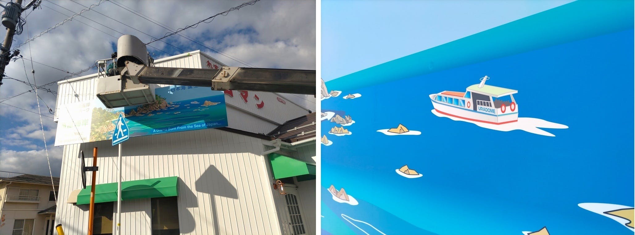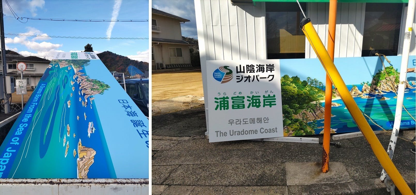 12月10日水曜日、浦富海岸のイラスト看板取付工事が行われ、無事施工完了いたしました!