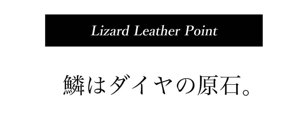 主張は少ないが、クセがない鱗模様が上品に見えるリザードレザー。小粒の引き締まった模様がクロコダイルレザーとは違う表情を与えてくれます。