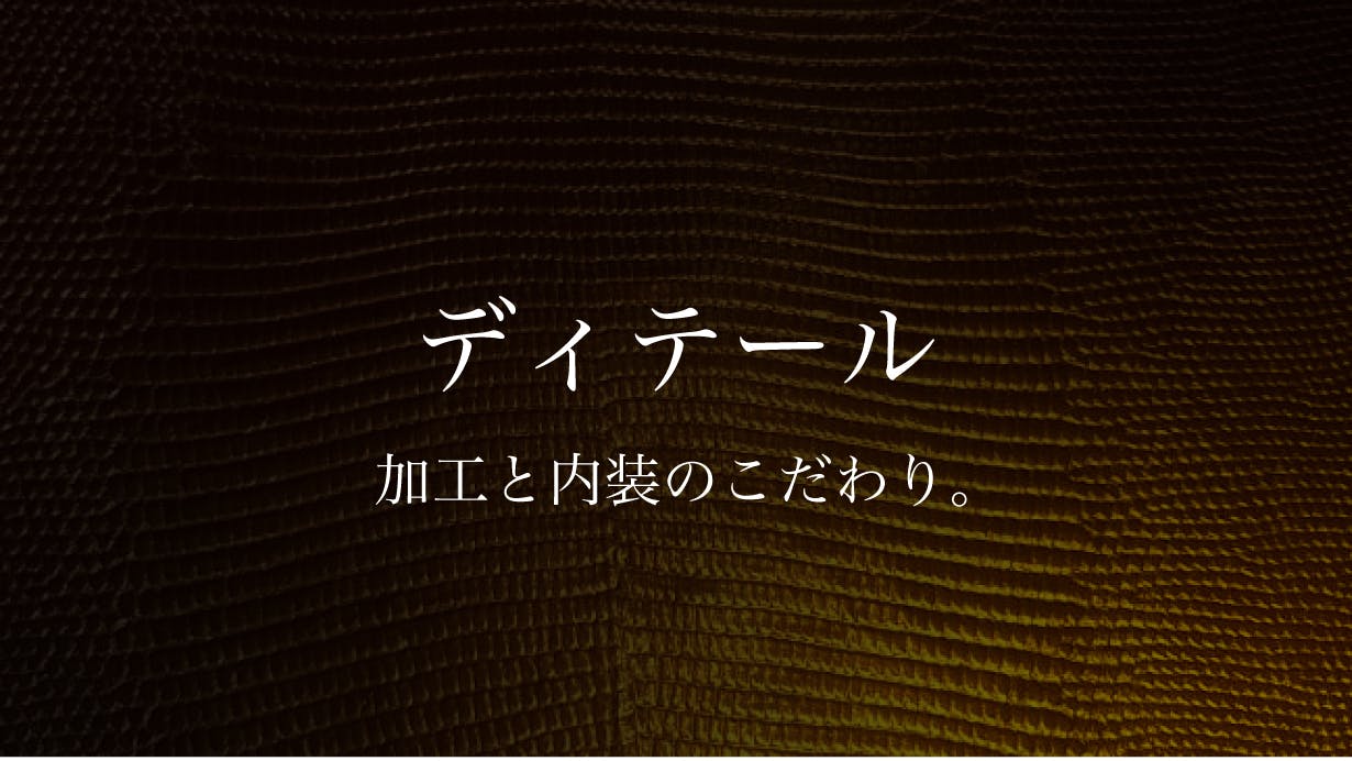 内装に羊革を採用しています。リザードレザーの柔らかさを生かせるように羊革特有の「柔らかさ」が必要でした。