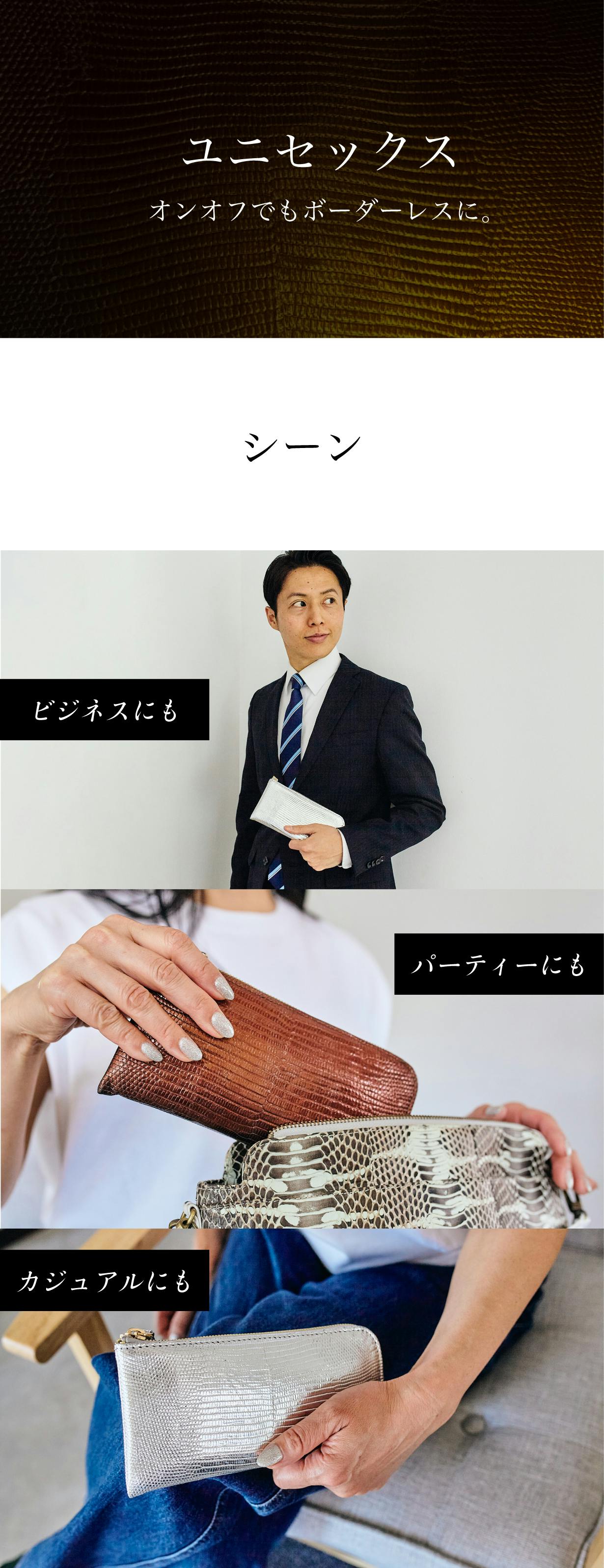 リザードレザーって硬いと思っていませんか?触った瞬間の感想は「ソフト感触。」日常でも使い心地がいい柔らかさです。