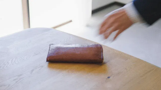 レザーといえば重いイメージを持つ方もいると思いますが、リザードレザーは予想より軽いです。だから、持ち運びが楽なのも嬉しいポイントです。