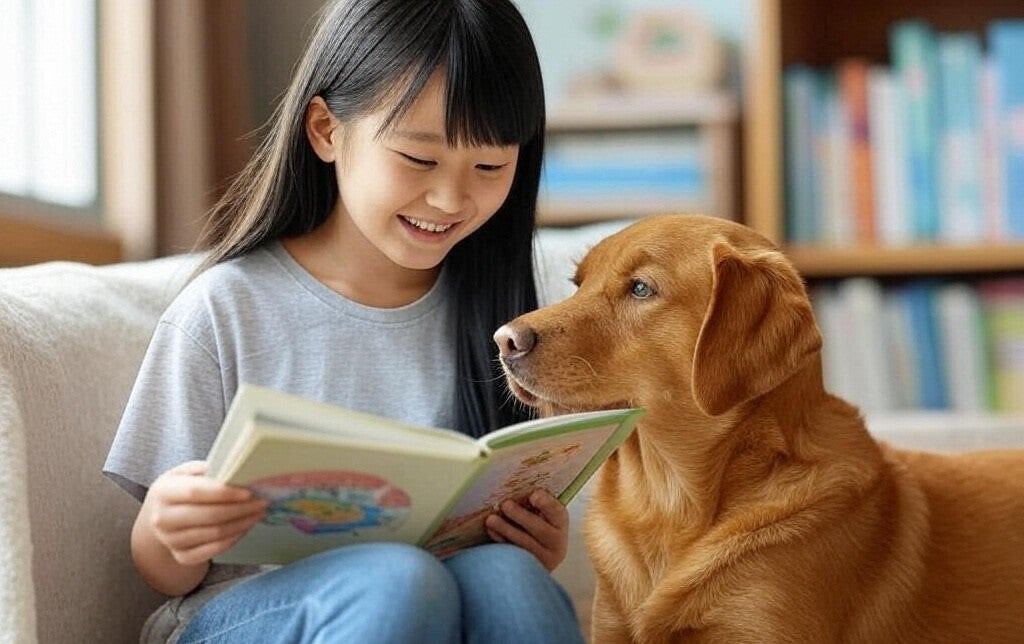 音読が苦手な小中学生がセラピー犬の力を借りて、安心して音読をすることができる場を作ります。