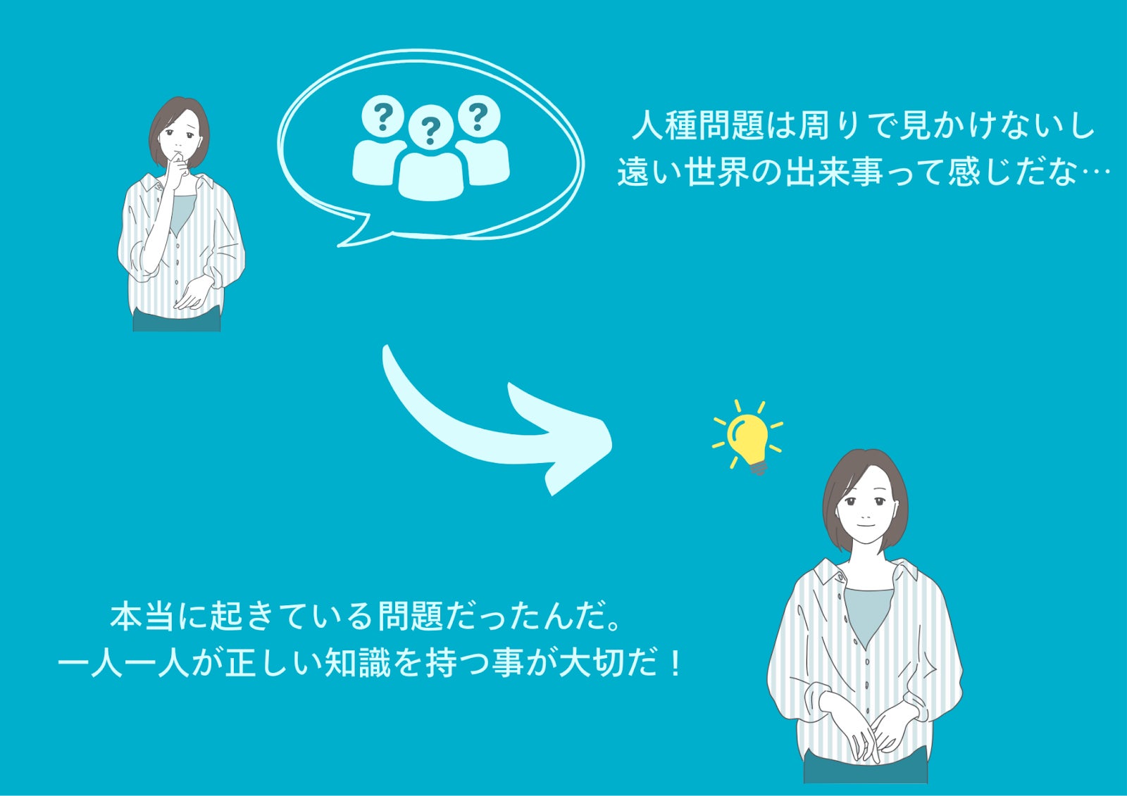 多様なバックグラウンドを持つ人々の存在を世の中に広めることで、人種問題を身近に感じ、互いに尊重し合える社会を目指しています。