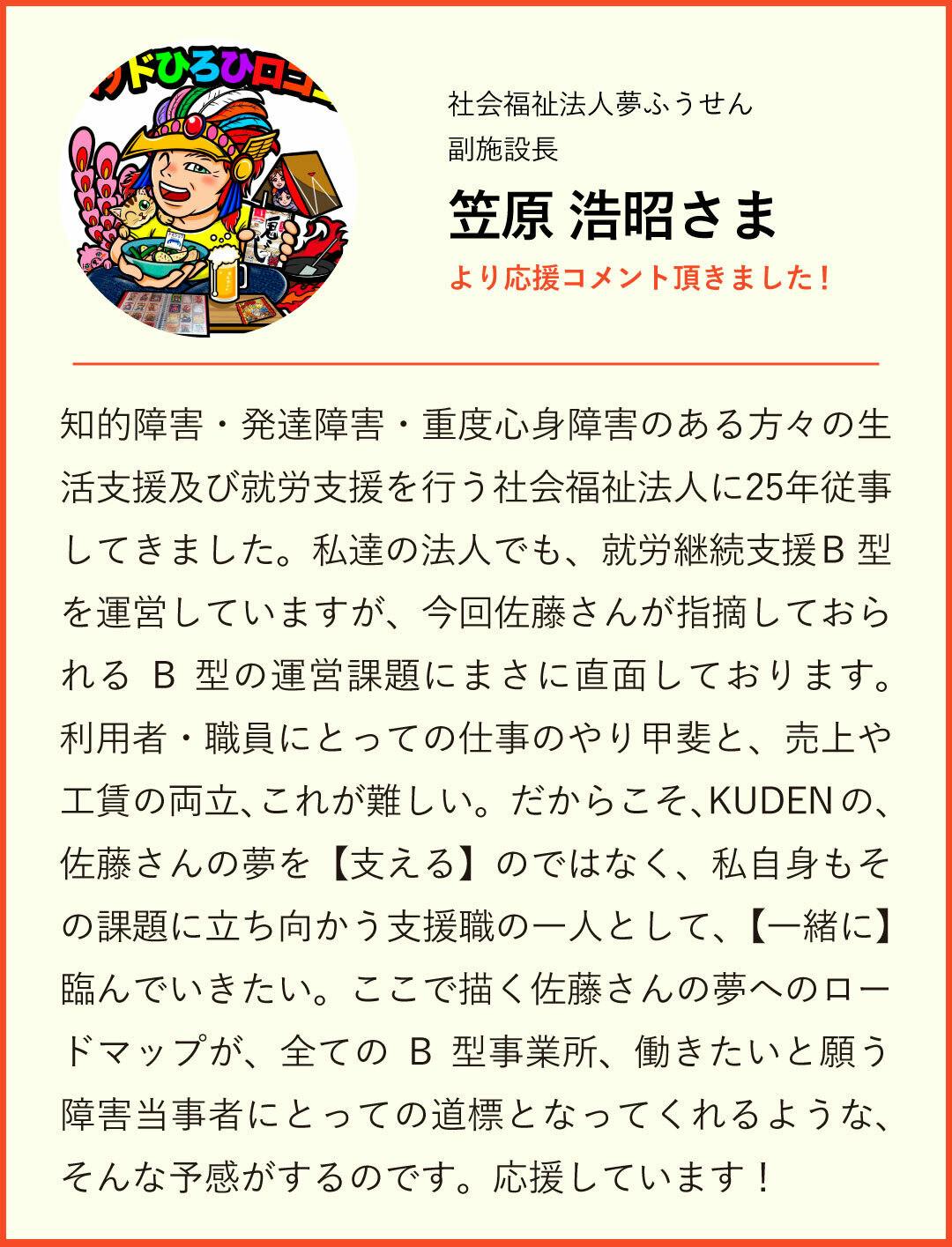 2025/07/19 09:00着物モチーフのファッションブランド「KUDEN by TAKAHIRO SATO」のデザイナー、Takこと佐藤貴浩です。プロジェクトへのご支援・応援、本当にありがとうございます。前回のプロジェクトでは多くの方にご支援いただき、「編集部フォーラム」のシステムを無事に構築することができました。物語や日本文化を愛する皆さまと“共に作る雑誌”という、私たちの挑戦の土台が、皆さんのおかげで形になりつつあります。心から感謝しています。●続・プロジェクトスタート!===========創刊メンバー募集!日本文化を愛する世界中のみんなで創る新しい参加型マガジンhttps://camp-fire.jp/projects/867985/view===========今回のプロジェクトは、そのフォーラムに実際にご参加いただく“最初の仲間”となってくださる方を募るための新たなチャレンジです。この活動は単なる雑誌制作ではありません。「好き」という気持ちをきっかけに、障がいのある息子と“働ける未来”を作ること。そのための仕組み作りを、皆さんと共に進めていくものです。この挑戦は、私個人の夢だけではなく、「誰かの“好き”が、誰かの“働く場所”に変わる」仕組みをつくるための挑戦です。雑誌は読んで楽しいもの。でも、そこで終わらせたくありません。読んで、参加して、語り合って…その積み重ねが、私の息子のような子どもたちが安心して働ける場所に繋がっていく。そんな未来を、本気で目指しています。支援という形で参加いただくのはもちろん嬉しいですが、もしよければ「知ってもらうこと」「伝えてもらうこと」も、私たちにとっては大きな力になります。「こういう活動があるよ」と、SNSやお知り合いへのシェア・ご紹介をしていただけたら、それが何よりの応援です。雑誌作りに参加してみたい方。日本文化やアニメ・マンガが好きな方。障害福祉を応援したい方。そして、「誰かの働く場所を作りたい」という想いに共感してくださる方。そんな方々と、繋がりたいと願っています。小さな試みですが、必ず意味のある未来につながると信じています。どうか、これからも見守り、支えてください。引き続き、よろしくお願いいたします。佐藤貴浩(Tak) もっと見る