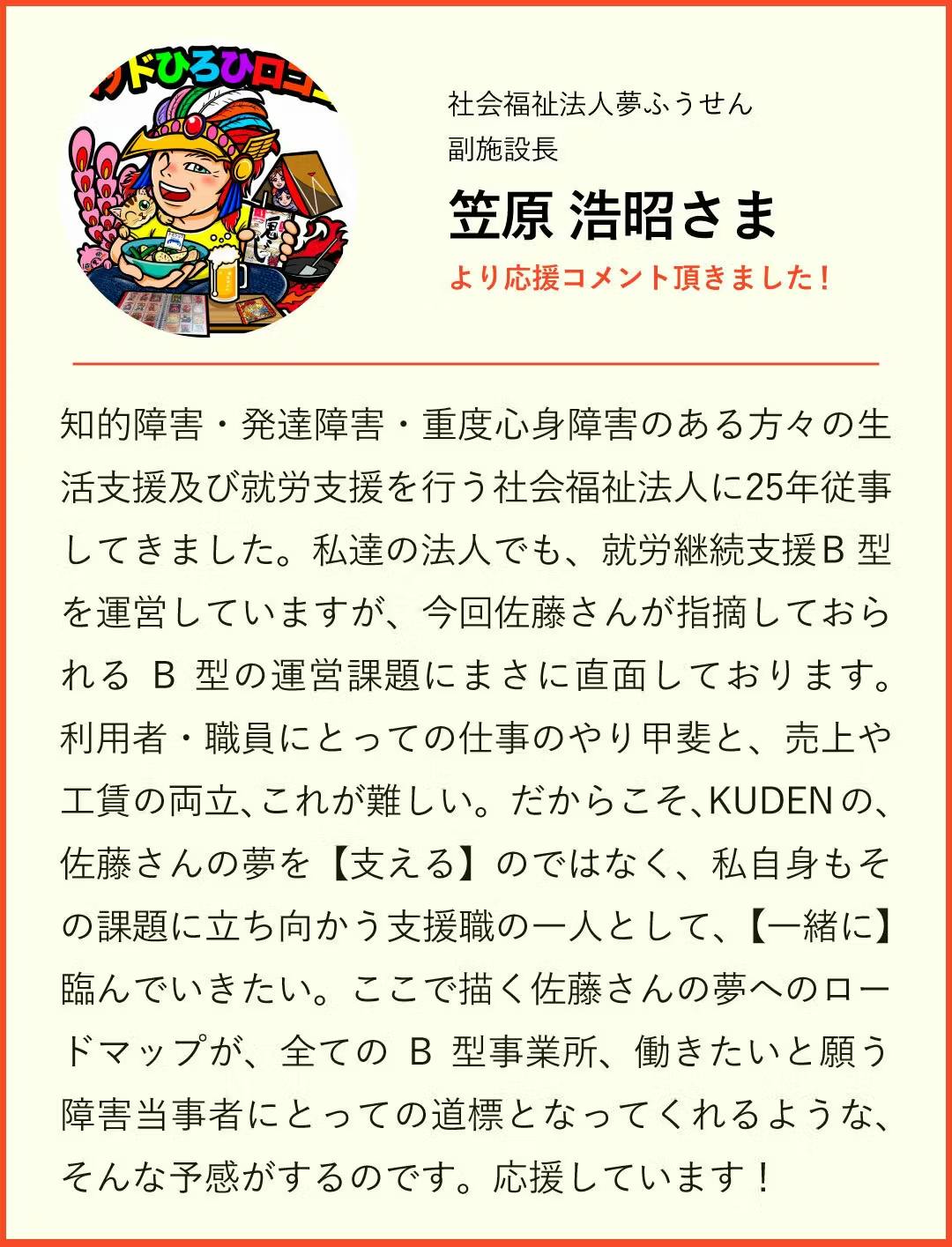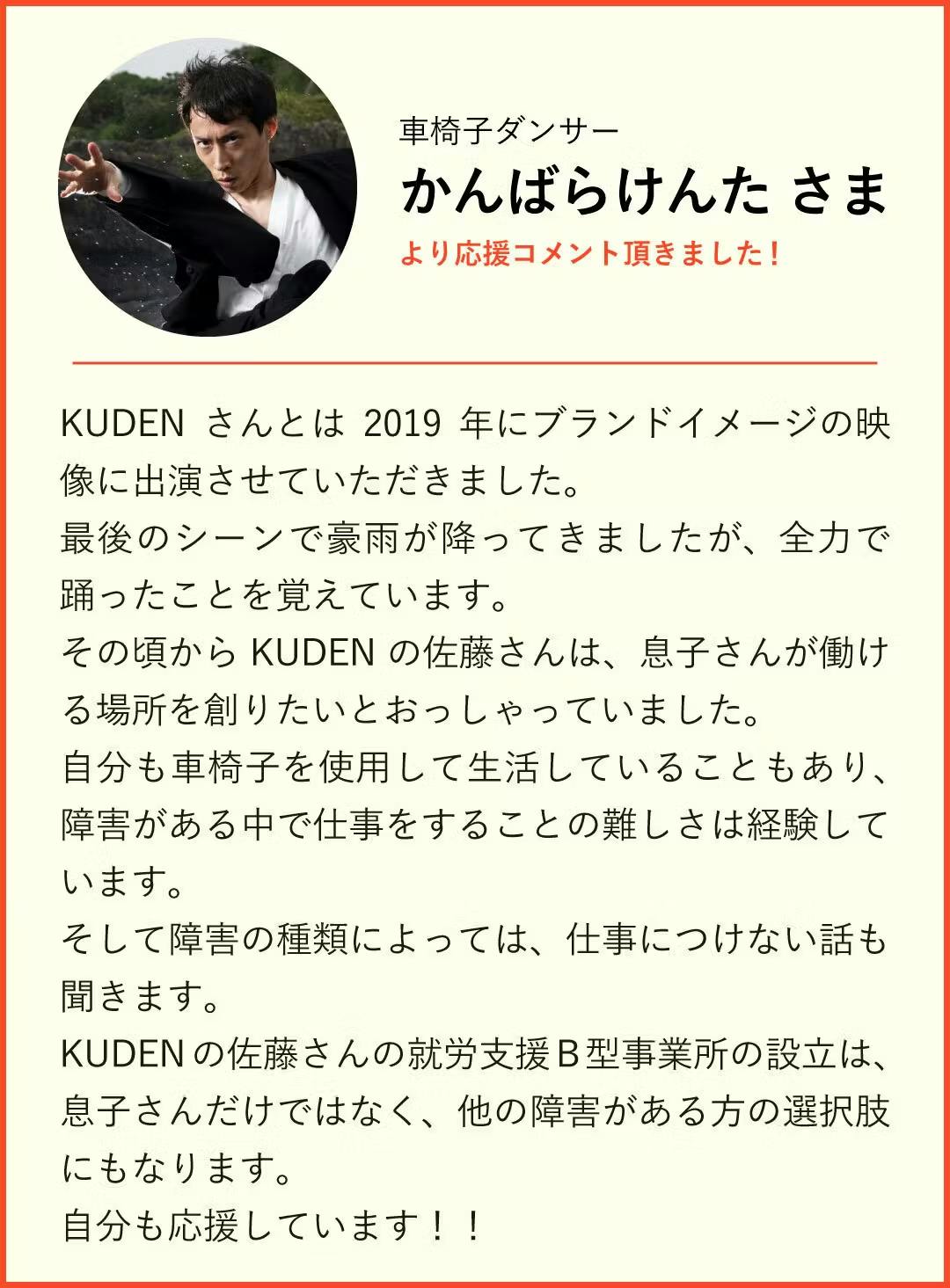 今回はKUDENの取り組みについて頂いた応援コメントをご紹介!