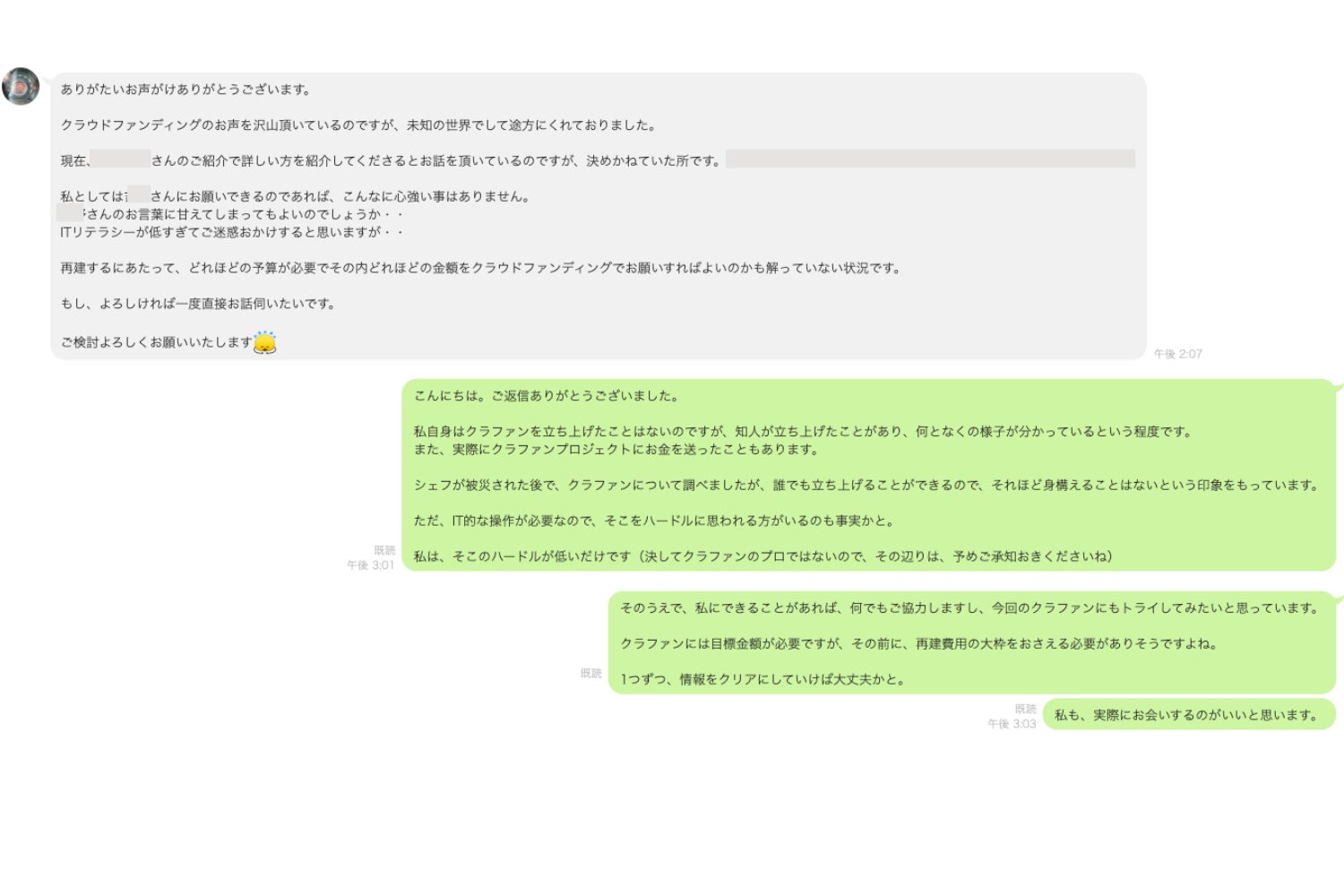 そんな中、常連のお客様から「お手伝いしますので、ぜひクラウドファンディングを立ち上げましょう」とメッセージをいただきました。その一言が、大きな後押しとなりました。