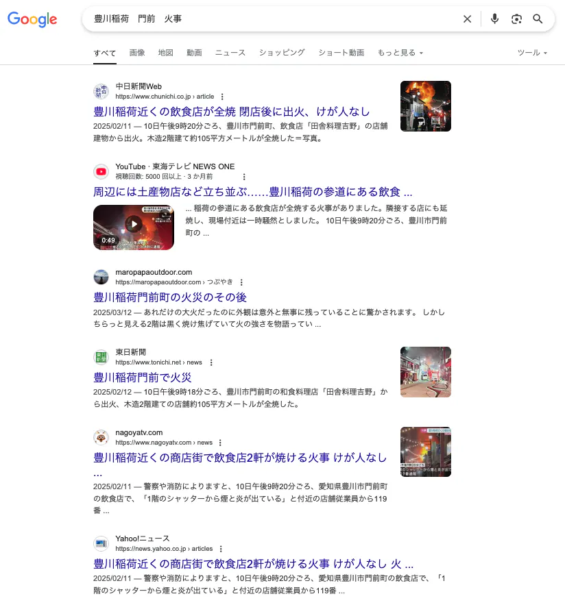 2025年2月10日の夜、延焼火災の被害を受け、店舗は全壊しました。