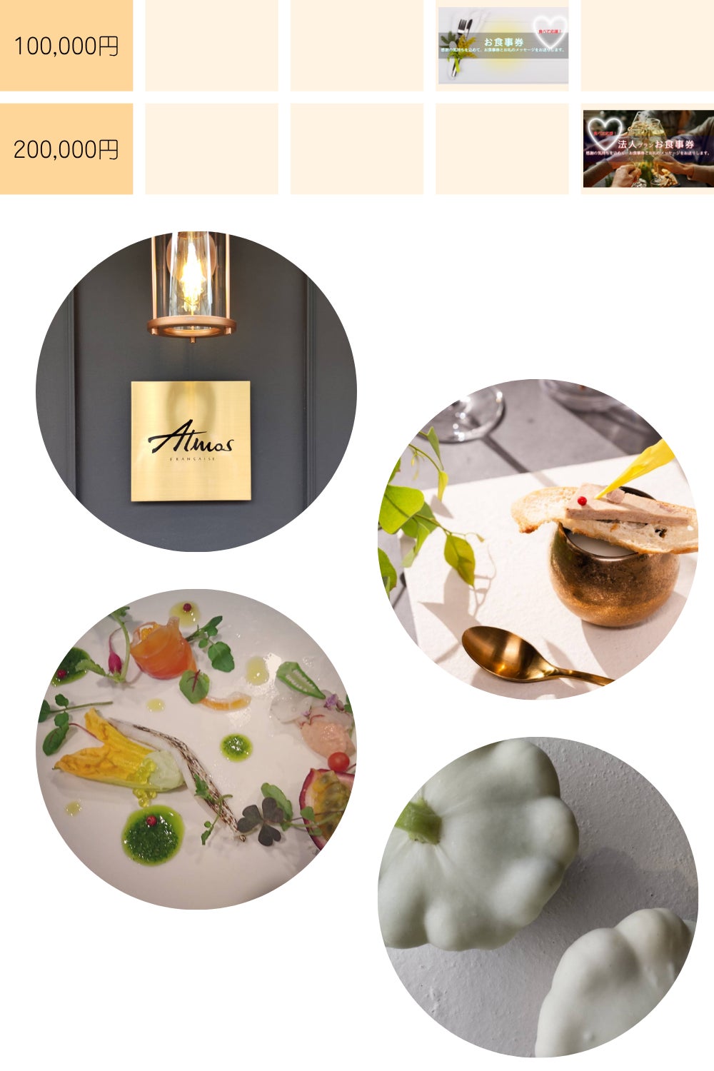 Atmosでのご飲食時に、お会計の一部または全額としてご利用いただける食事券です。・ランチ・ディナーいずれのご利用でもご使用可能。