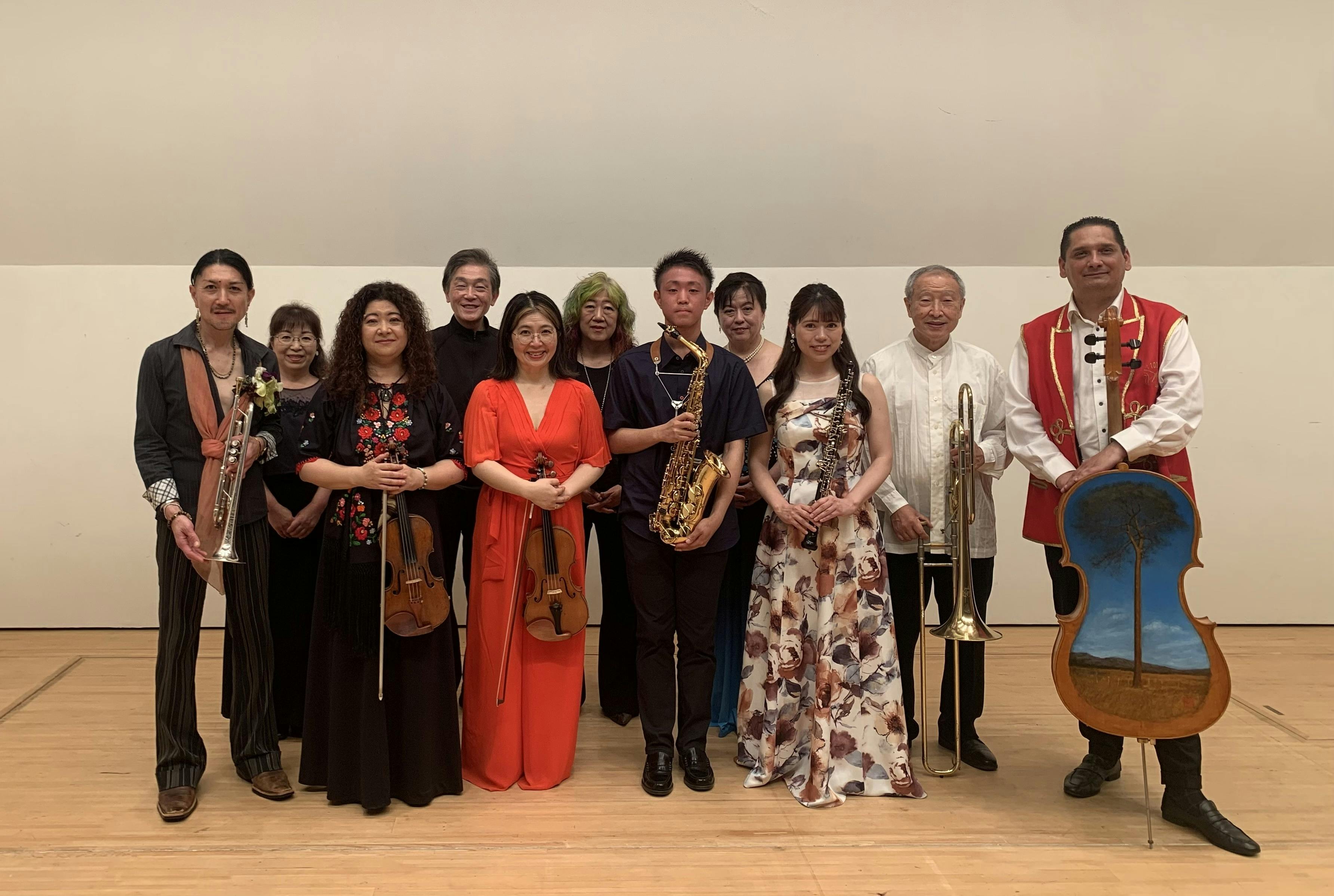 私たちは、地元出身で国内外で活動しているプロ音楽家と協力し合いながら地域の学校などと連携し、音楽教育の支援活動を行っています。過去には、地元の吹奏楽ワークショップを主催し、子供達がプロに指導を受けたあとパフォーマンスを披露できる場を提供しました。