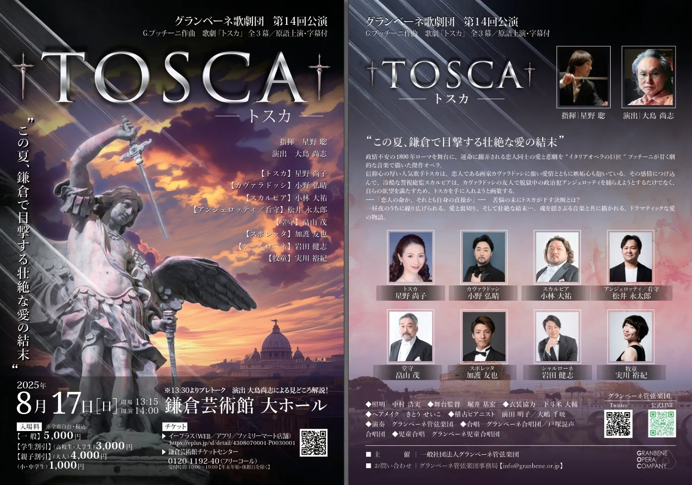 2025/08/08 20:537月29日をもって、グランベーネ歌劇団『トスカ』公演に向けたクラウドファンディングは終了いたしました。ご支援・ご協力くださった皆さま、本当にありがとうございました。本来は終了直後にお知らせすべきところ、投稿が遅くなり申し訳ありません。最終的に、506,500円という、目標には届かなかったものの、半分を超える温かいご支援をいただくことができました。応援の一つひとつが、私たちの舞台をつくる大きな力となっています。心より御礼申し上げます。クラファン終了から少し時間が経ちましたが、バックステージでは、本番に向けて着々と準備が進んでいます。なお、クラウドファンディングのリターンのうち、バックステージツアーご招待および特別席チケット(最前列/後ブロック最前列/最後列)につきましては、若干数ではありますが、今後も受付が可能です。ただし、本番が近づいてからのお申込みは、対応が難しくなる場合がございます。ご希望の方は、お早めに事務局までご連絡ください。▼お問合せ先:info@granbene.or.jp舞台に向けて、団員一同、精一杯の準備を進めています。ぜひ本番当日、鎌倉芸術館でお目にかかれますように! もっと見る