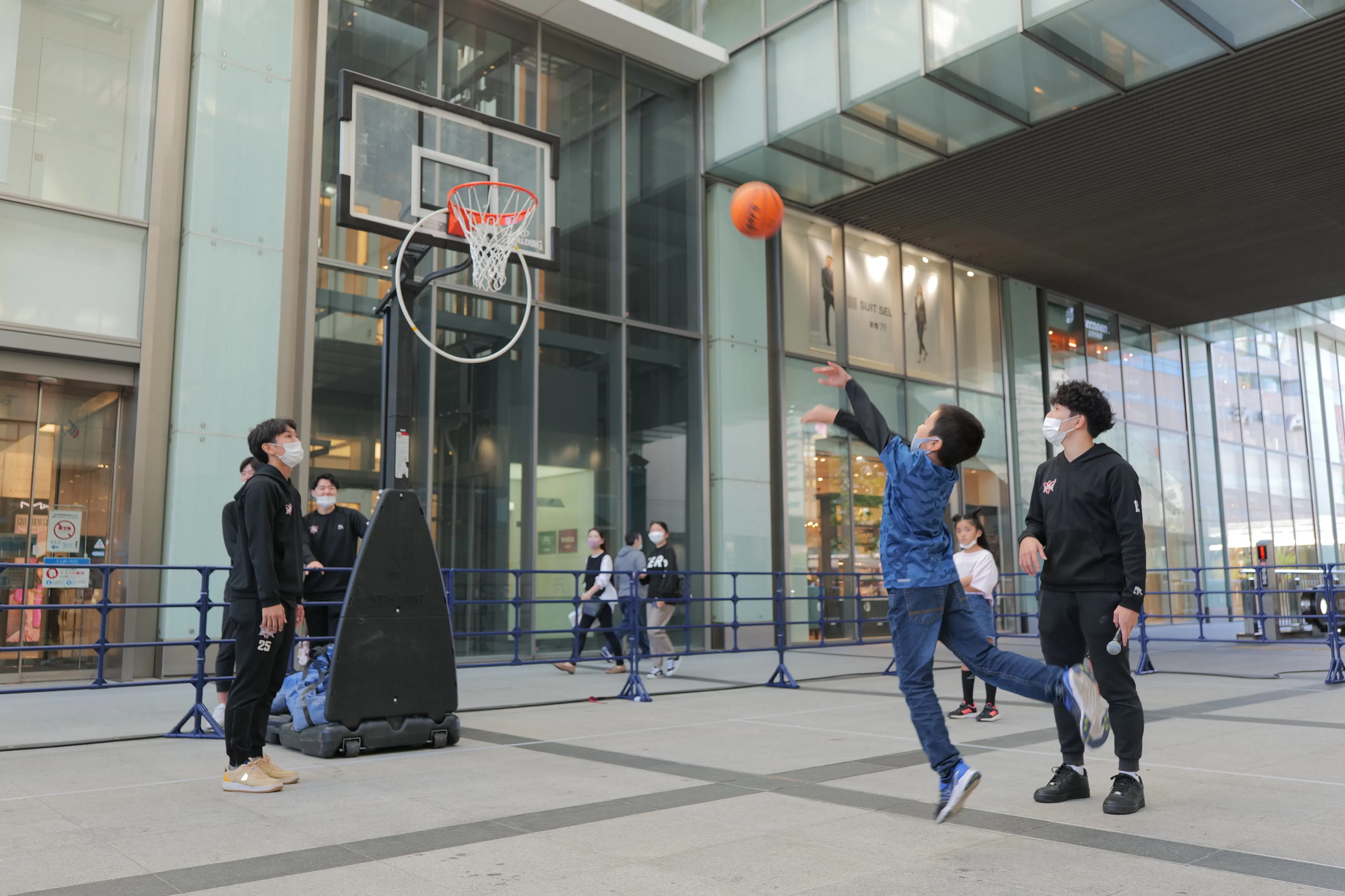 ・陸上:競技場と同じ素材の陸上走路 ・バスケットボール:ゴールを街中広場に設置 ・球技種目を存分に体験できるようにネット設備