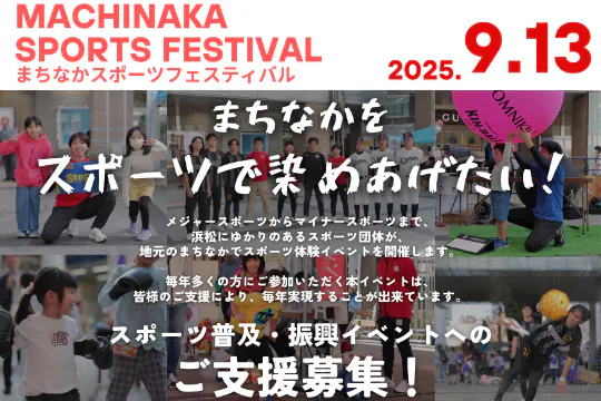 2025/06/01 01:00第1次クラファン、ありがとうございました!!!クラファン活動、皆様本当にありがとうございました。ご支援くださった方、ページをご覧くださった方、SNSで私の声に耳を傾けて下さった方、本当に有難うございます。心より感謝申し上げます。まちなかスポーツフェスティバルの活動を通じて、少しでもより良い「スポーツの街・はままつ」を創造していける様、努力精進してまいります。引き続き、まちなかスポーツフェスティバル実行委員会の活動に。ご支援ご協力を賜れますと幸いです。まずは、第1次クラファンの御礼を申し上げます。実行委員会一同 もっと見る