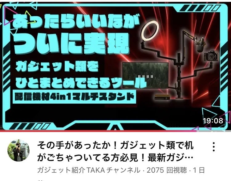 この度、ガジェット紹介 TAKAチャンネル様にストリーミングアームをご紹介いただきました。