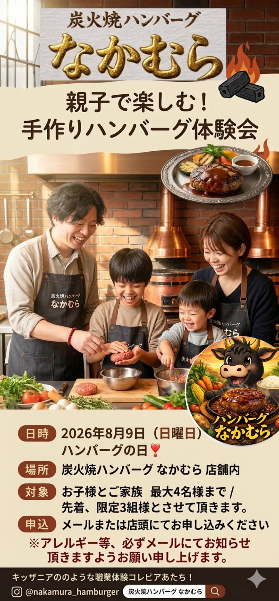 炭火焼ハンバーグなかむらのホームページにて掲載させて頂きます。