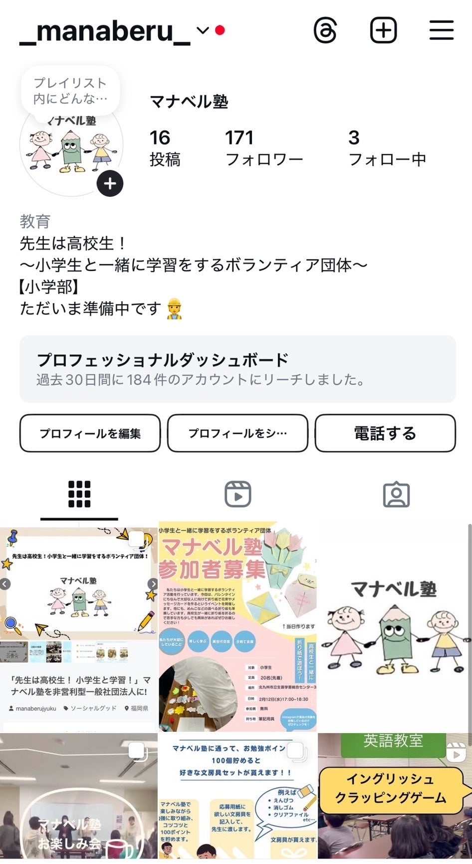 このアカウントでは、マナベル塾の活動の様子をストーリー、投稿を通して発信しています!