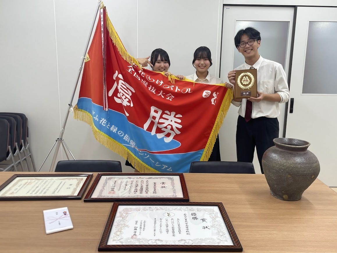 昨年(2024年)の広島大会に参加したすべての学校から選抜された広島工業大学高校が、広島地区大会代表として「高校生花いけバトル全国選抜大会」に出場したのですが、なんと!全国優勝を勝ち取って帰ってきてくれました。