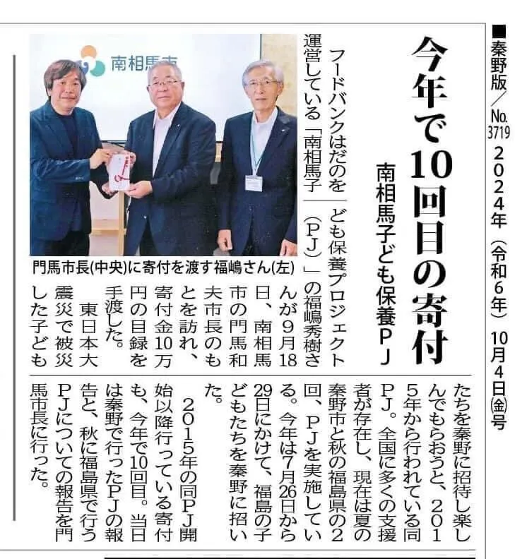 そんな流れから2015年より福島県南相馬市の子ども達を神奈川県秦野市へ招待させていただく活動をさせていただいております。どうぞよろしくお願い申し上げます。